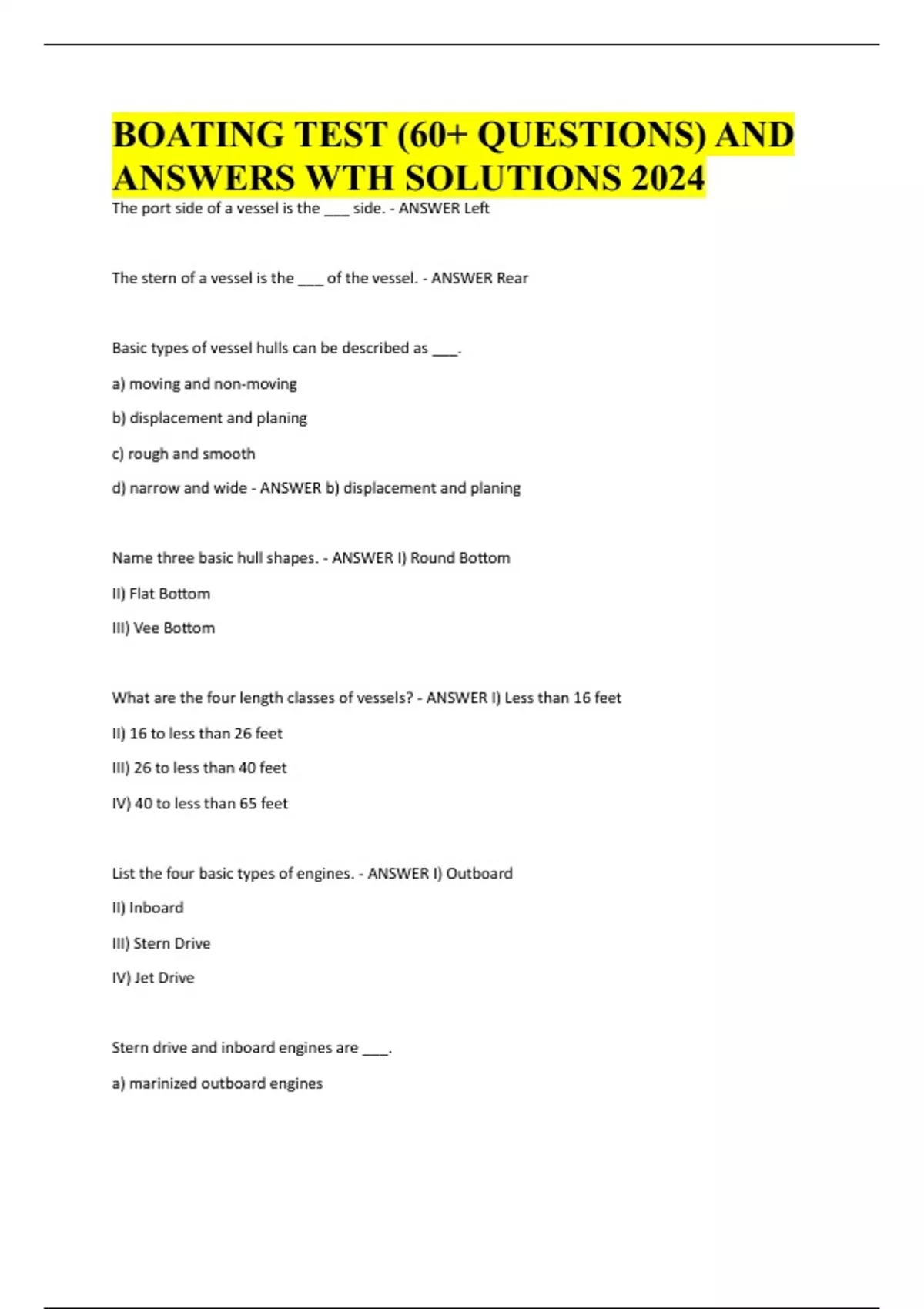 BOATING TEST (60+ QUESTIONS) AND ANSWERS WTH SOLUTIONS 2024