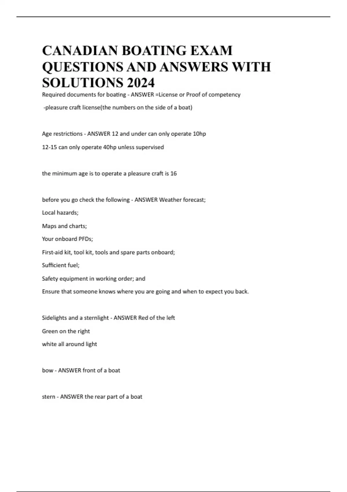 CANADIAN BOATING EXAM QUESTIONS AND ANSWERS WITH SOLUTIONS 2024