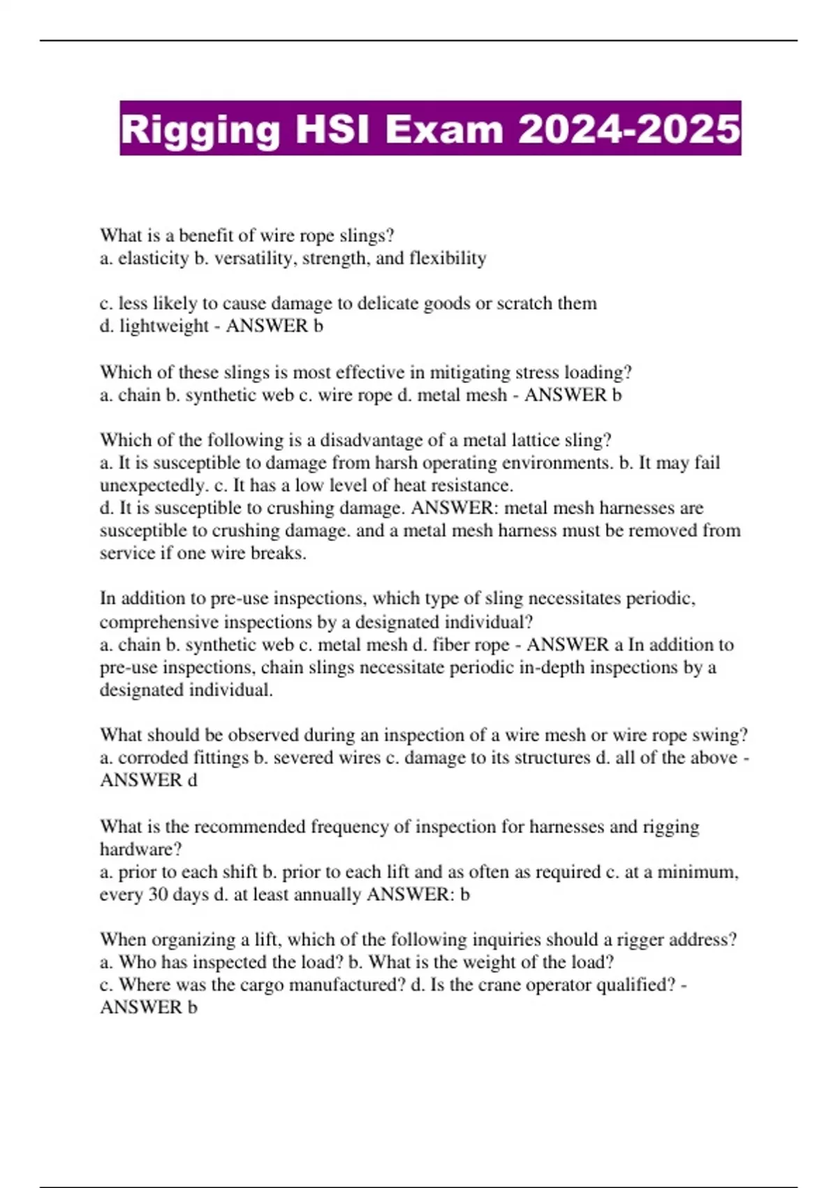 Rigging HSI Exam