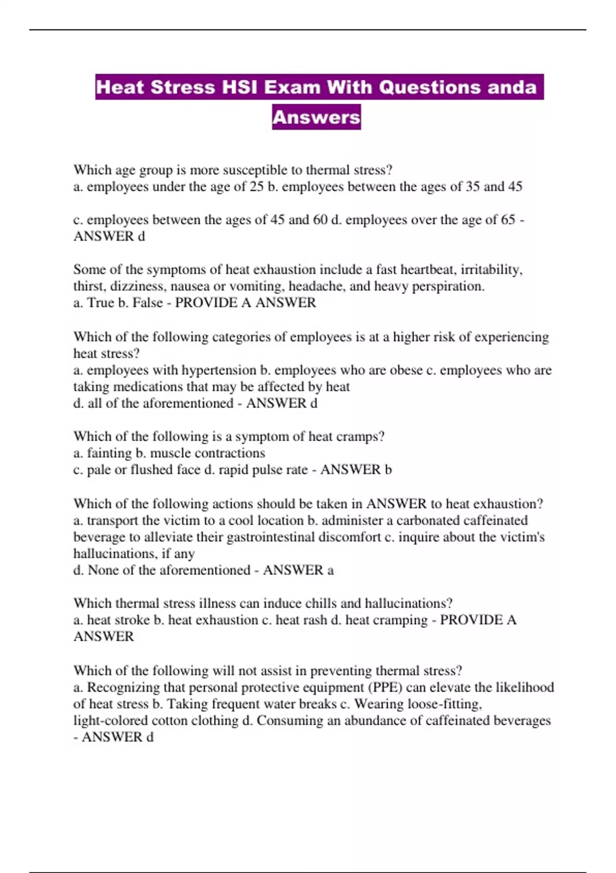 Heat Stress HSI Exam With Questions anda Answers...