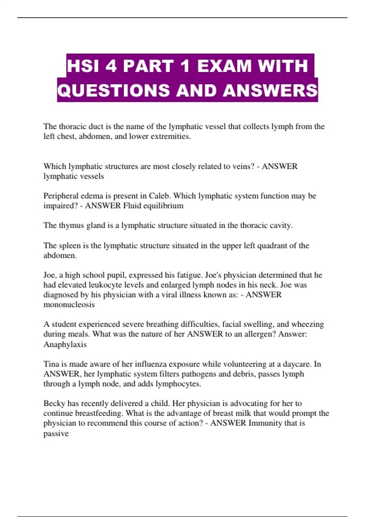HSI 4 PART 1 EXAM WITH QUESTIONS AND ANSWERS...