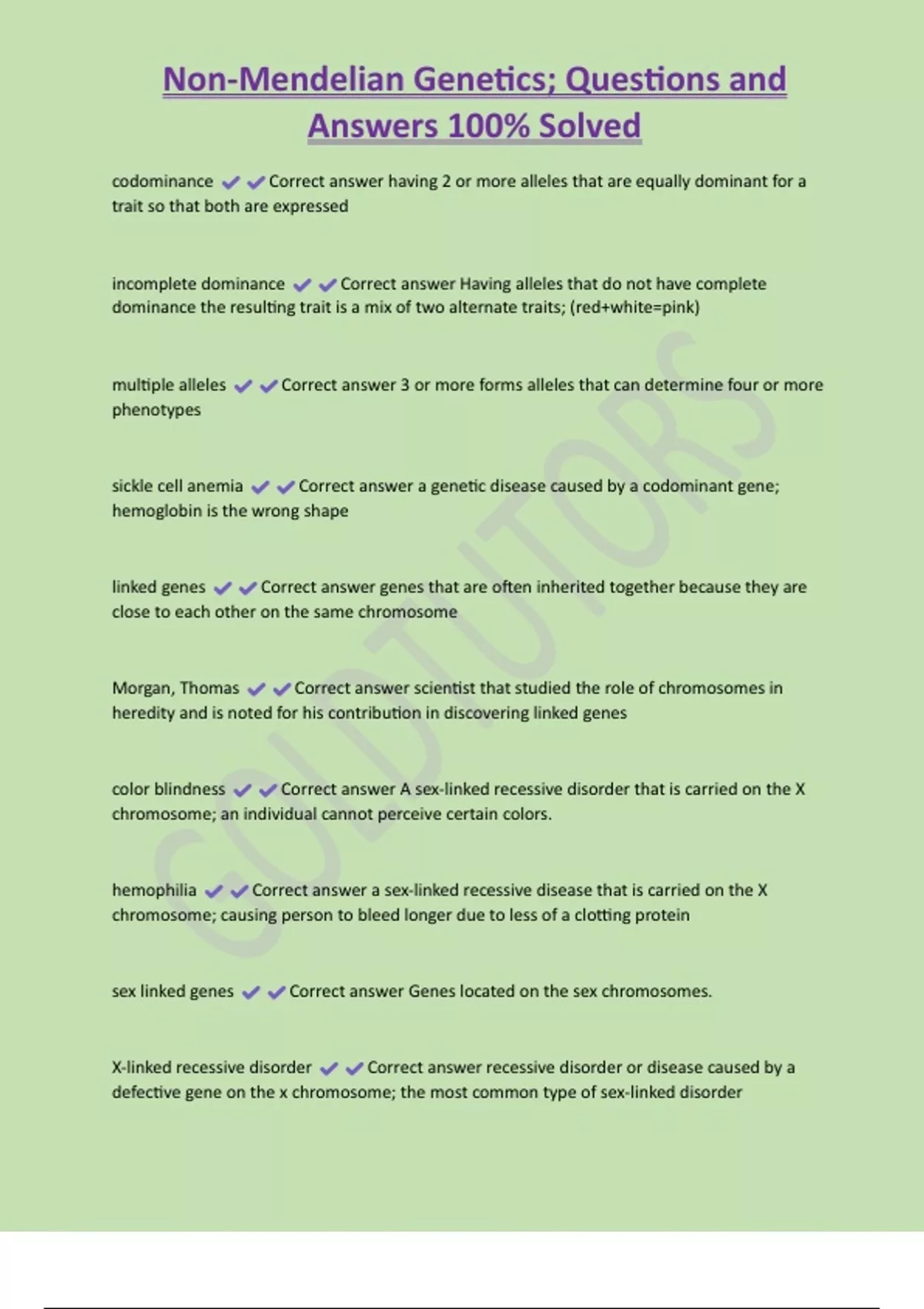Non-Mendelian Genetics; Questions and Answers 100% Solved