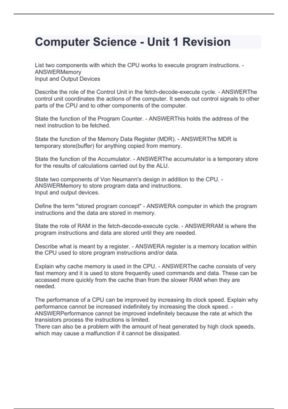 Computer Science - Unit 1 Revision.