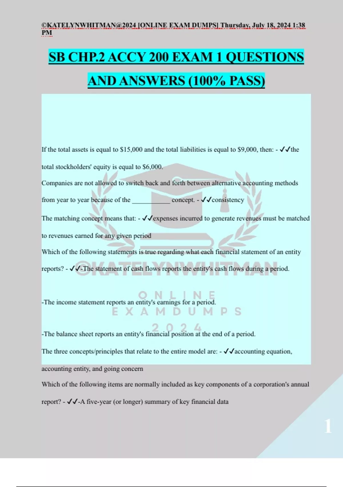 SB CHP.2 ACCY 200 EXAM 1 QUESTIONS AND ANSWERS (100% PASS)