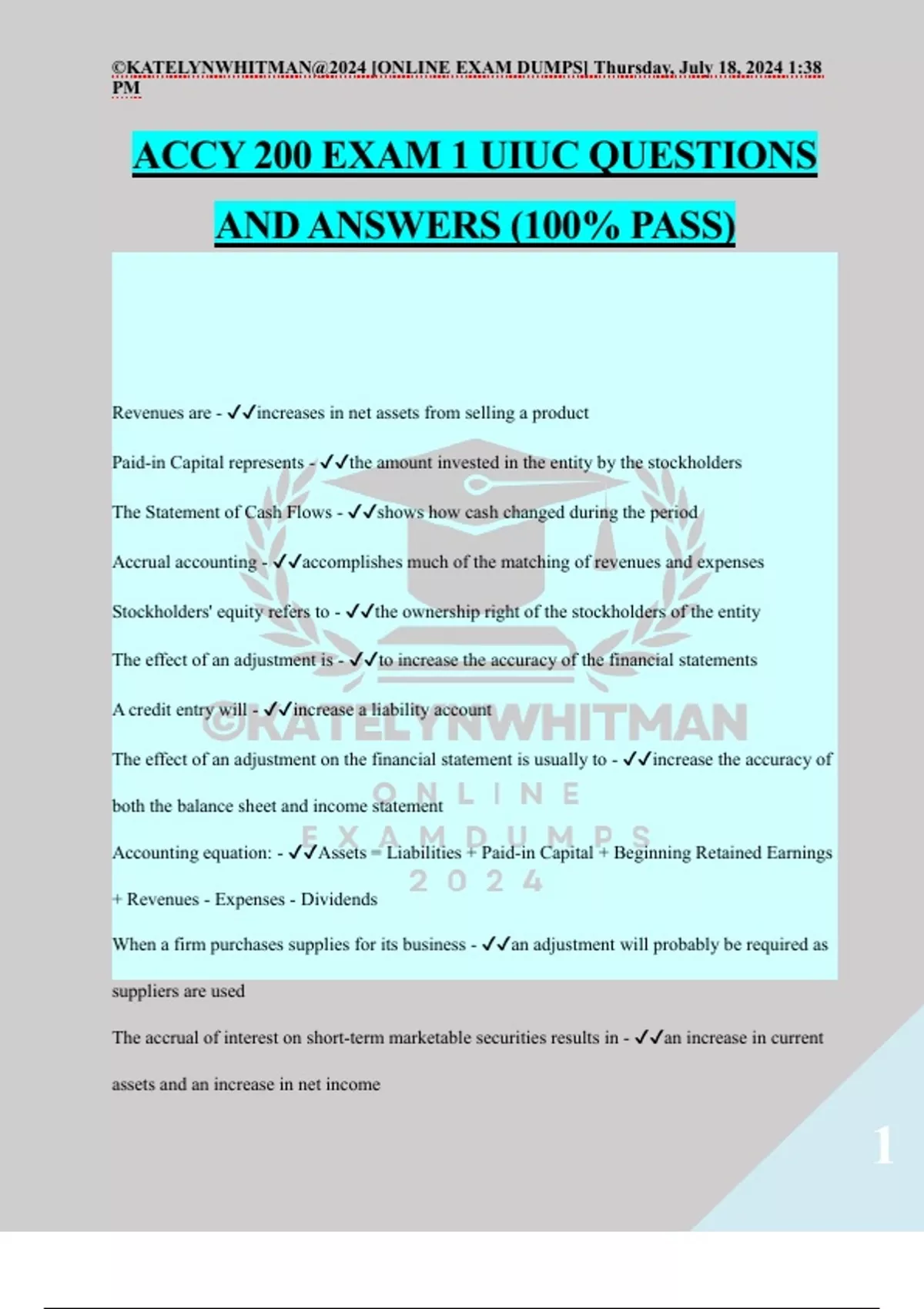 ACCY 200 EXAM 1 UIUC QUESTIONS AND ANSWERS (100% PASS)