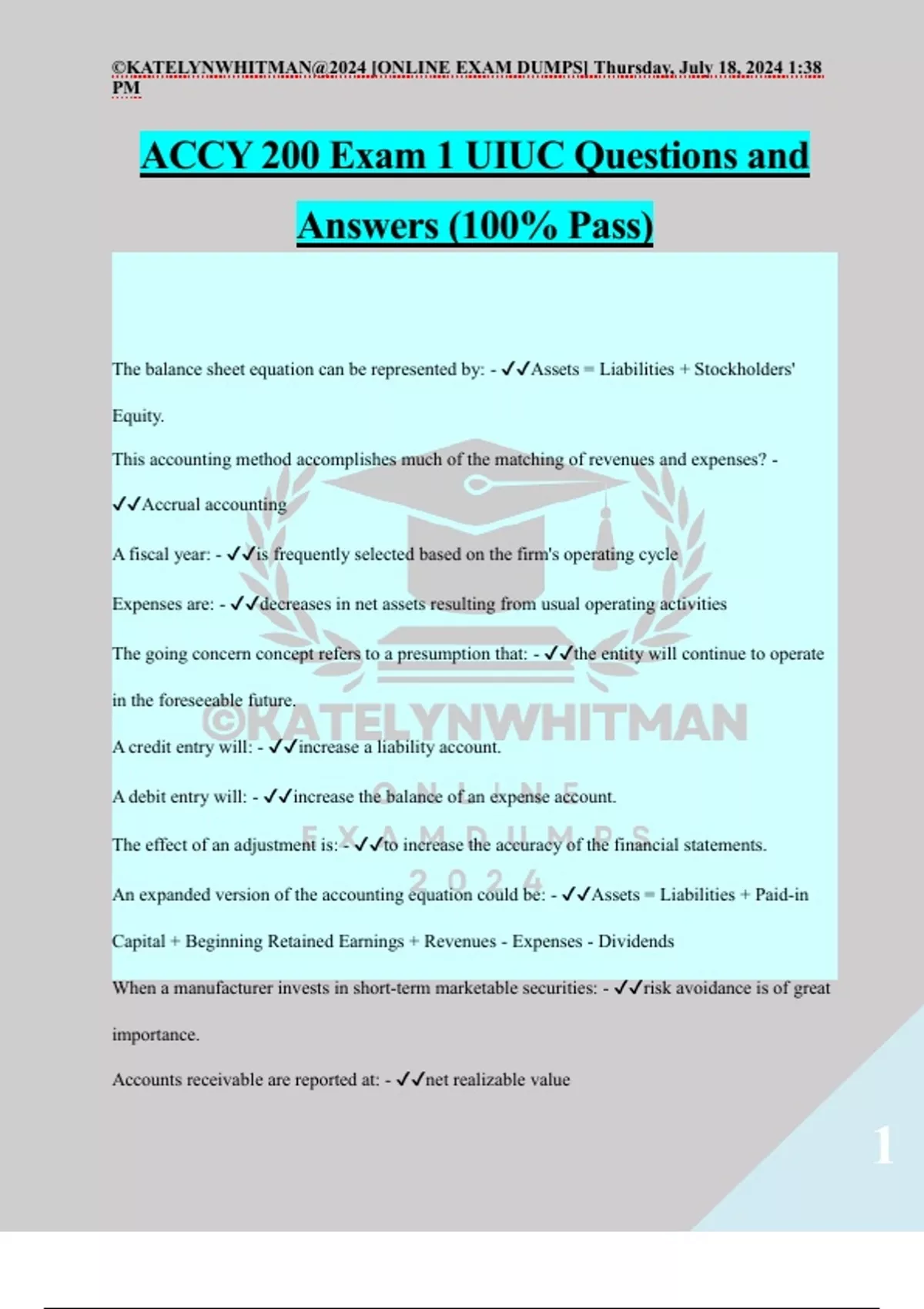 Accounting 200 Exam Bundle Pack Verified Questions and Answers (Graded A+)
