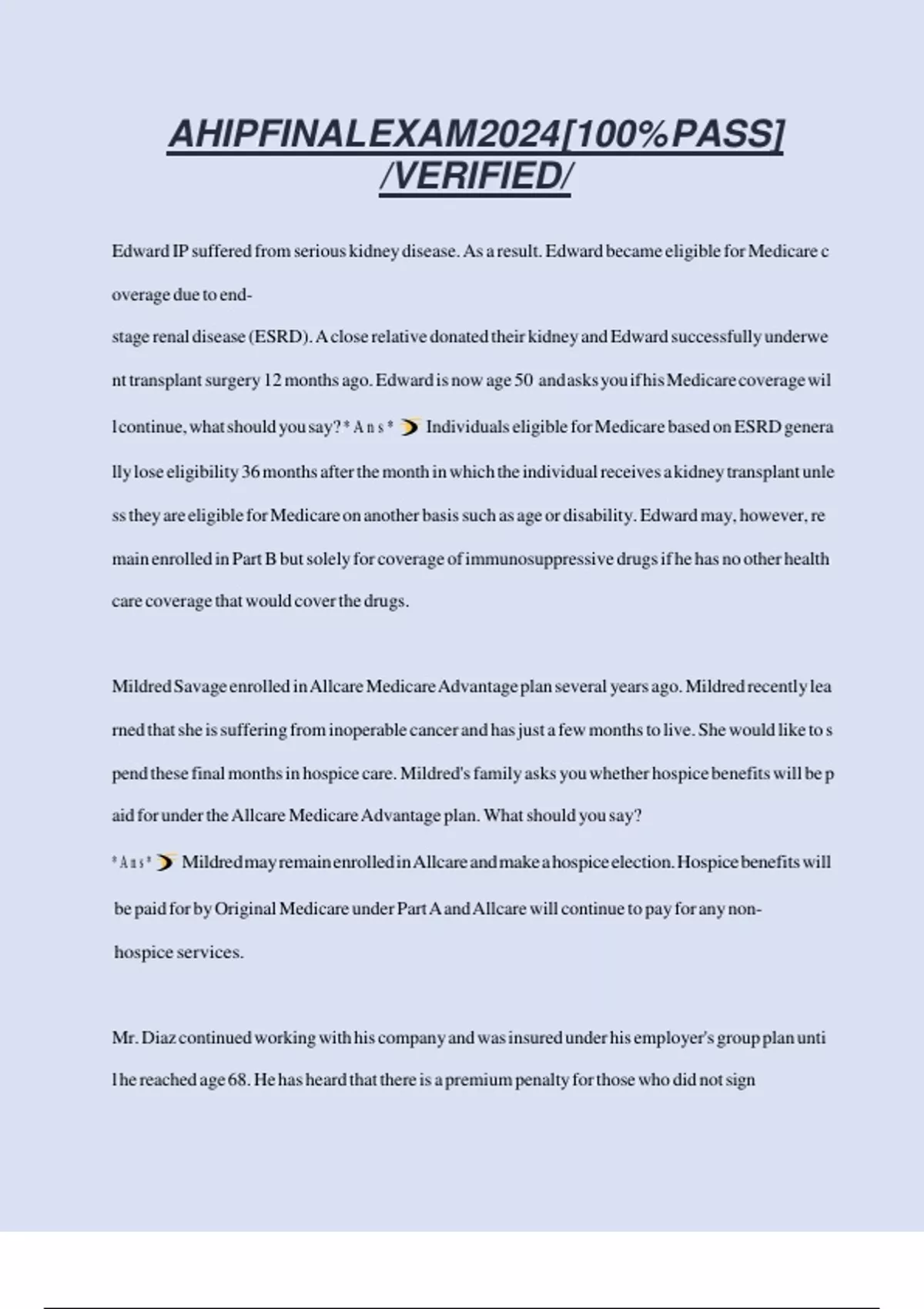 AHIP 2024 Final Exam Test Questions and Answers Updated (Verified Answers)