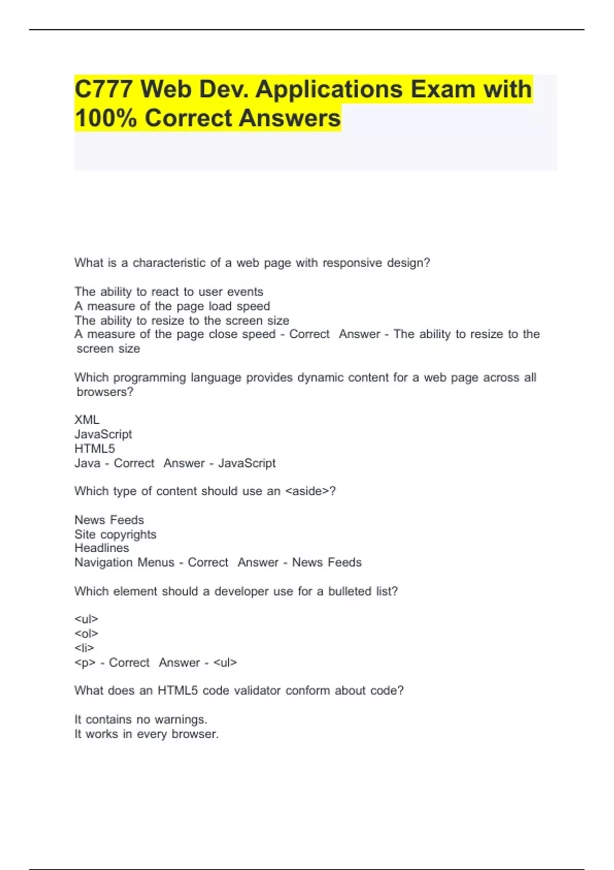 Package deal for WGU C777 Web Development Applications Exam with 100% Correct Answers 2024 Guaranteed Success!!
