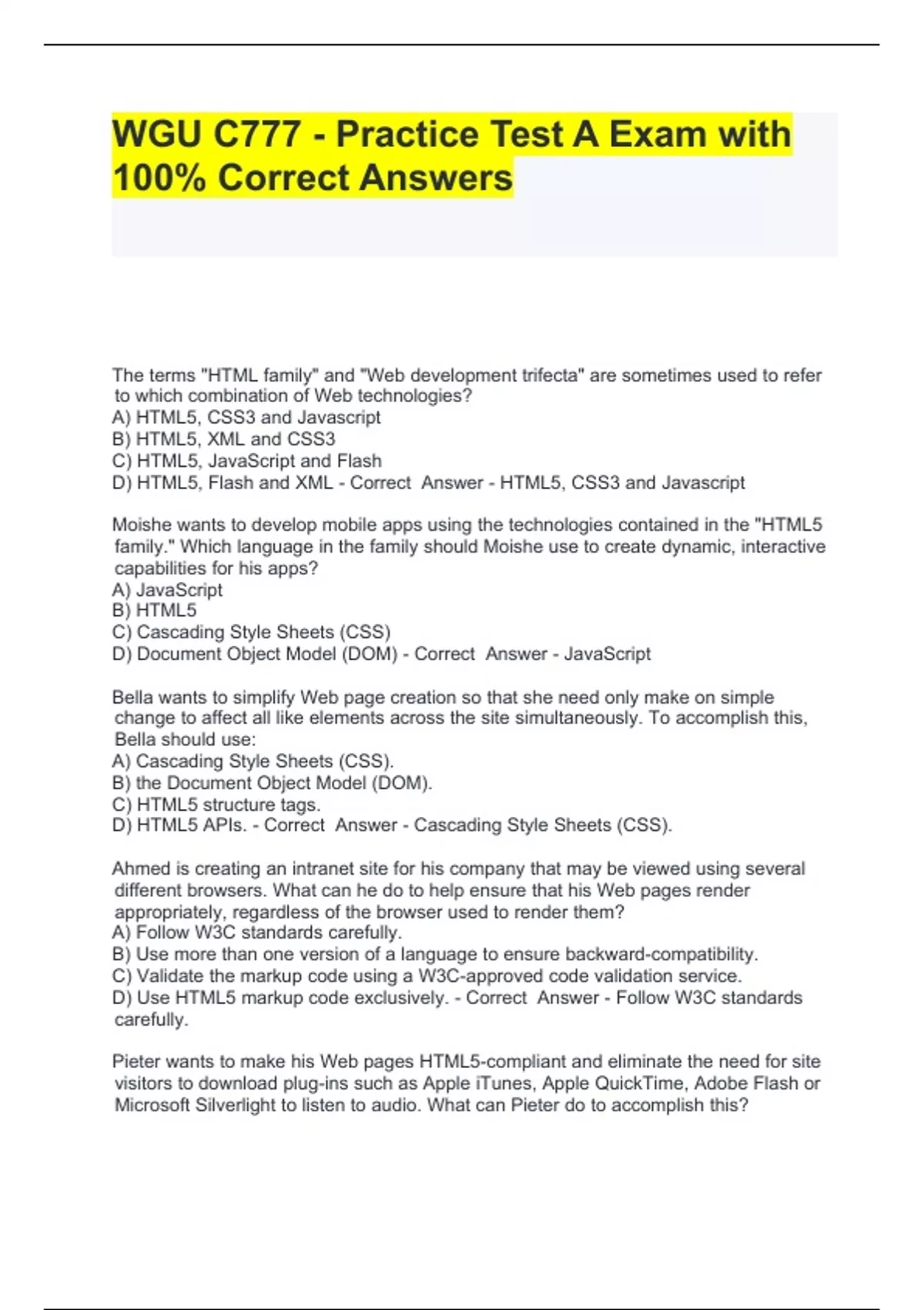 Package deal for WGU C777 Web Development Applications Exam with 100% Correct Answers 2024 Guaranteed Success!!