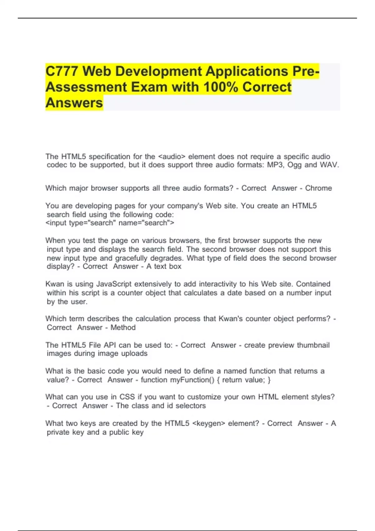 C777 Web Development Applications Pre-Assessment Exam with 100% Correct Answers.