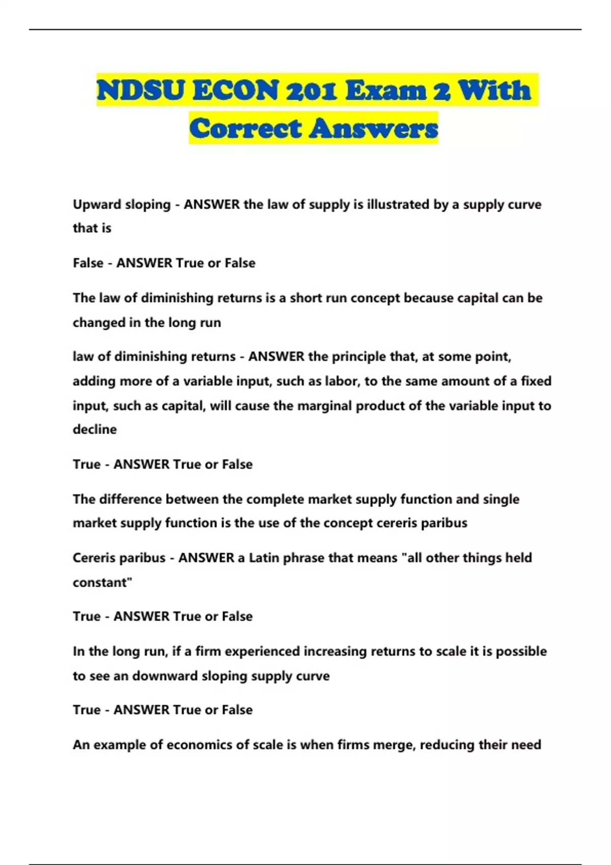 NDSU ECON 201 Exam 2 With Correct Answers...