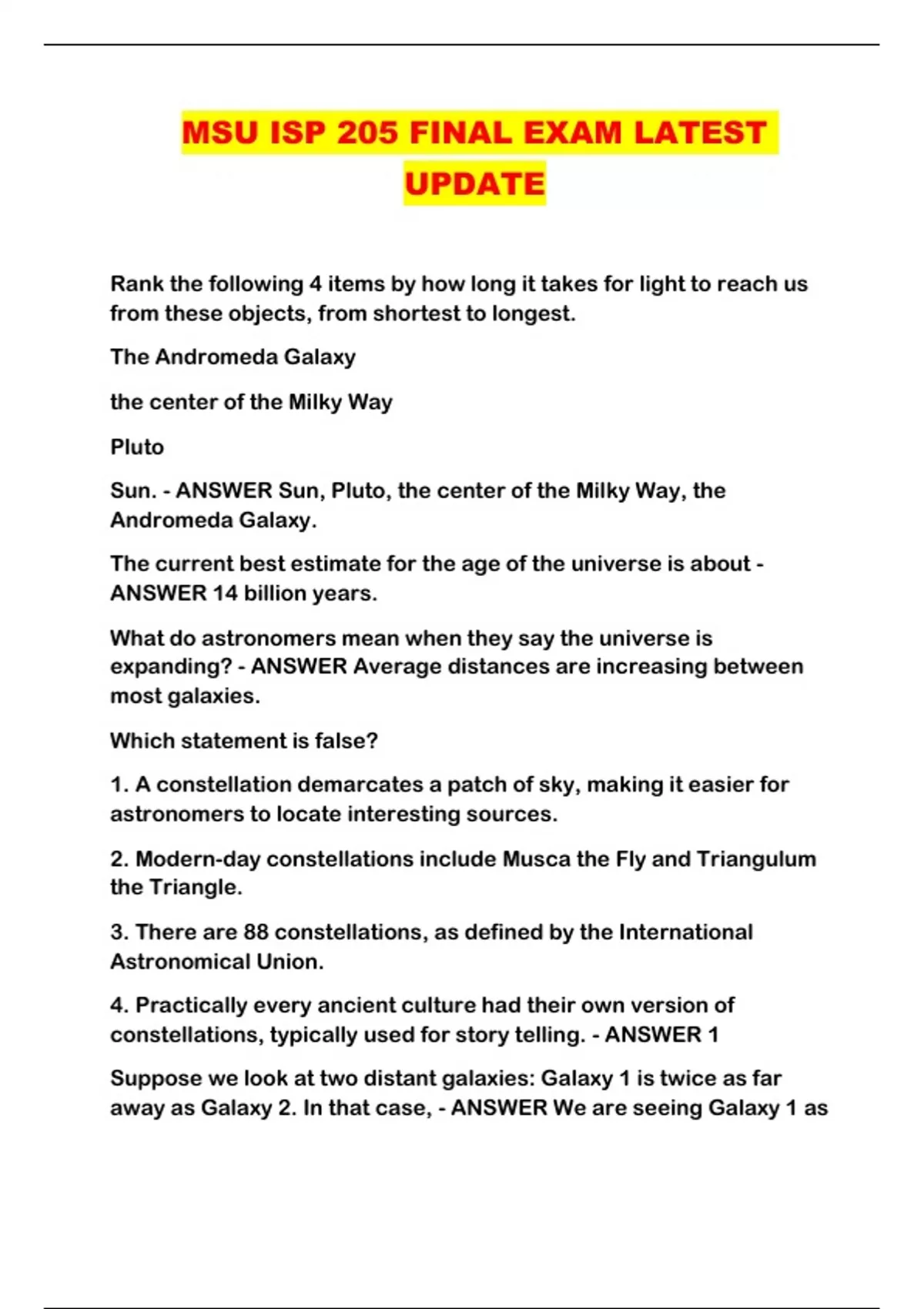 msu isp 205 final exam latest update