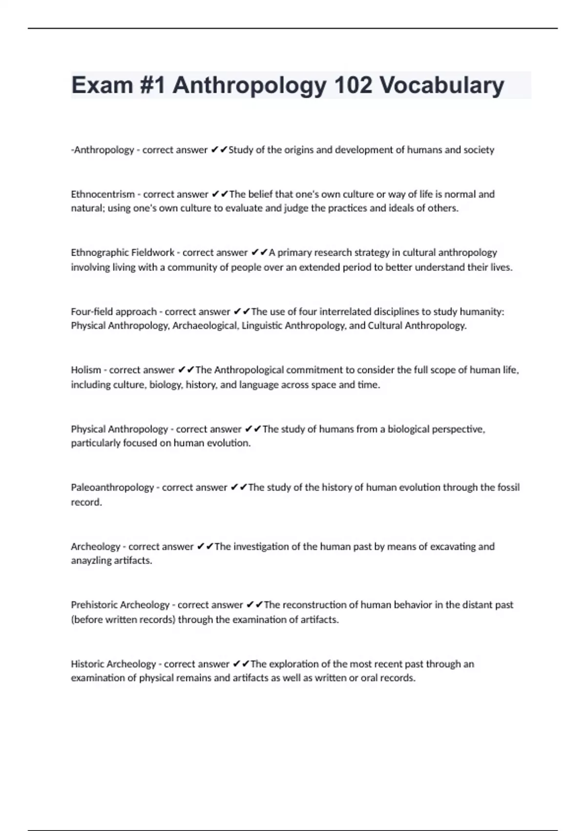 package deal for ANTHROPOLOGY 102 exam VERIFIED/PASSED