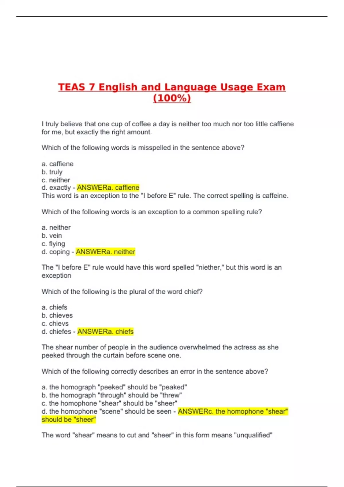 - TEAS 7 English and Language Usage