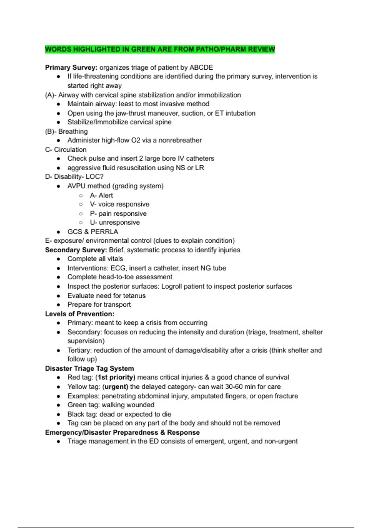 NURS 635; MED SURG MEMSN USFCA Emergency Nursing lecture notes
