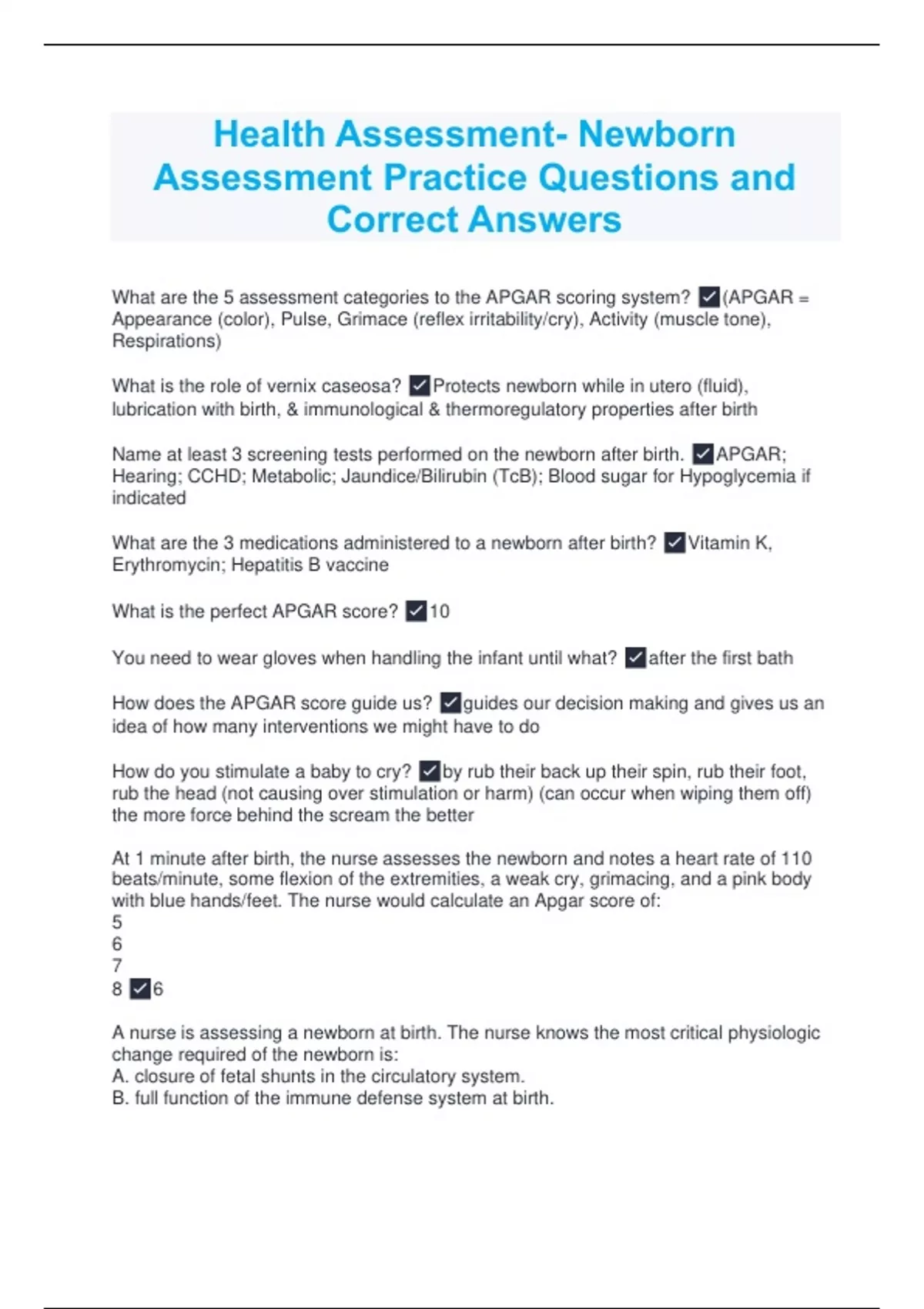 Health Assessment- Newborn Assessment Practice Questions and Correct Answers