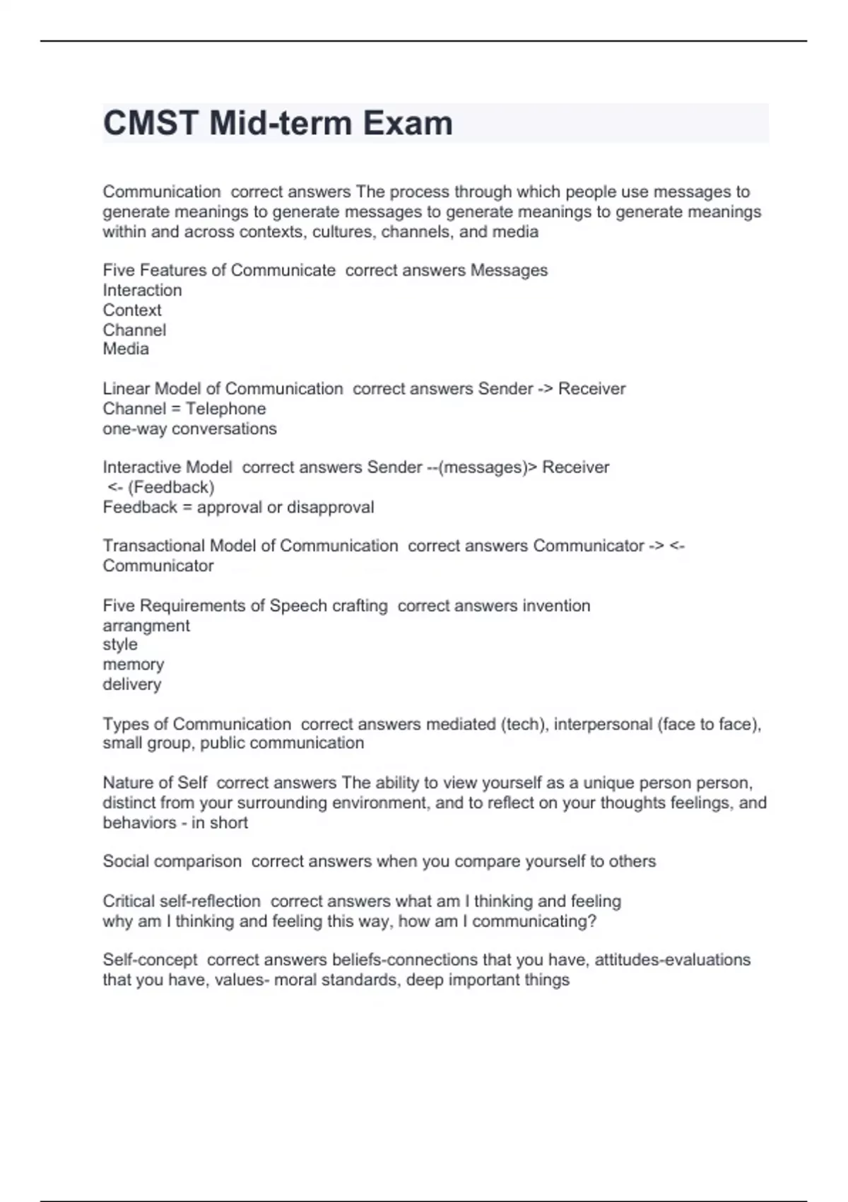 Communication correct answers The process through which people use messages to generate meanings to generate messages to generate meanings to generate meanings within and across contexts, cultures, channels, and media