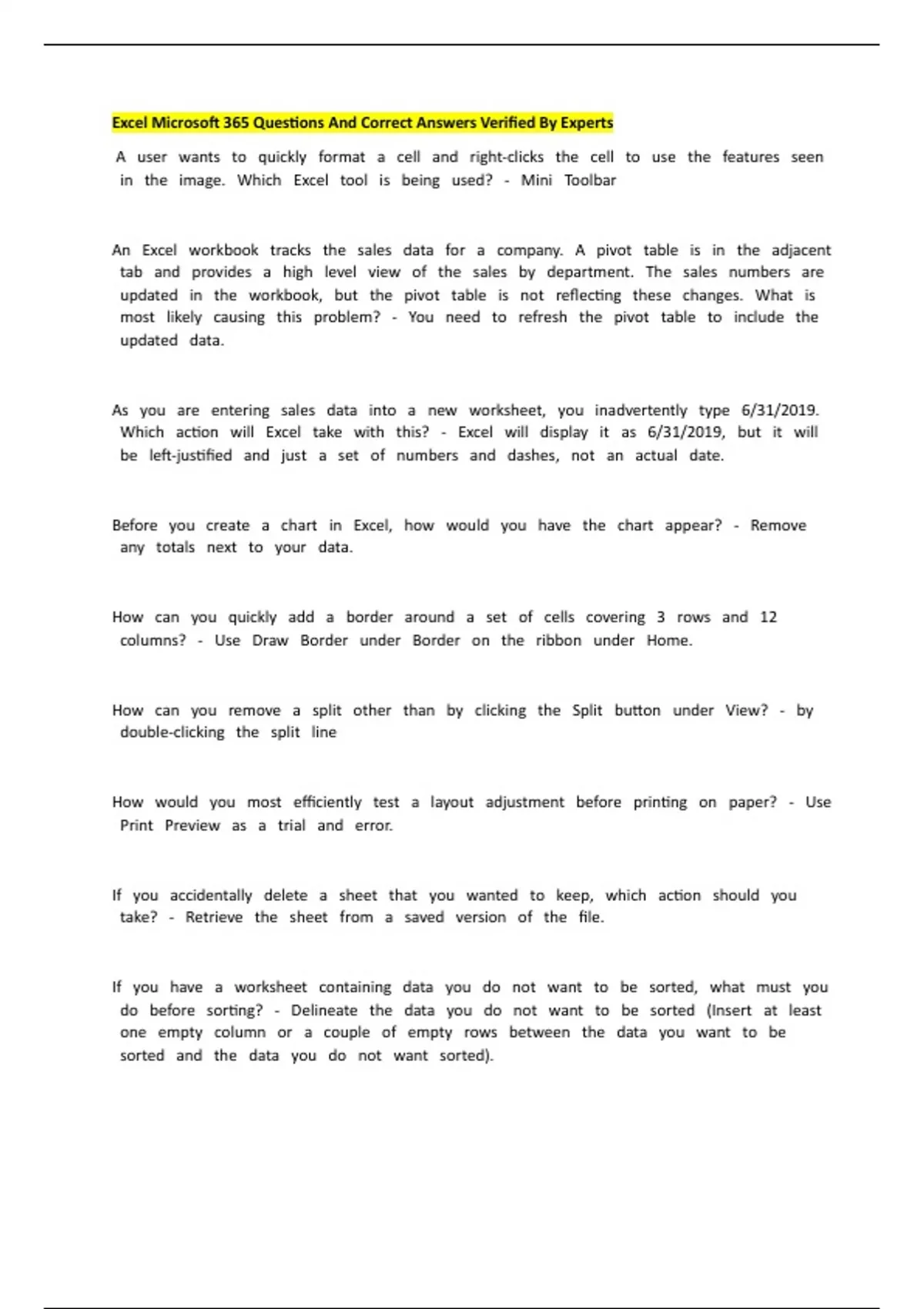 Exam of 5 pages for the course Excel Microsof at Excel Microsof (Excel Microsoft 365)