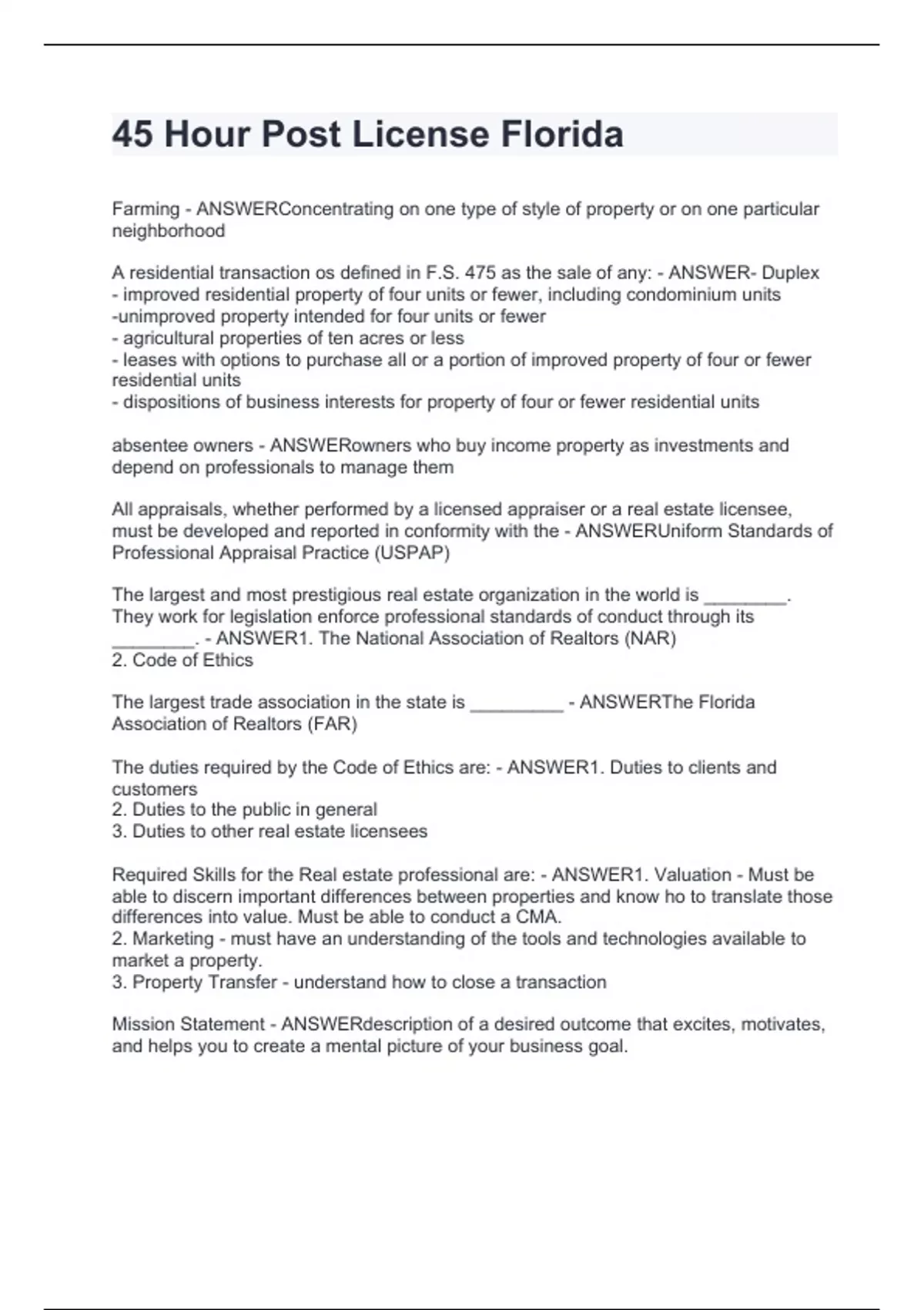 45 Hour Post License Florida.Final exams comprehensive test 2024