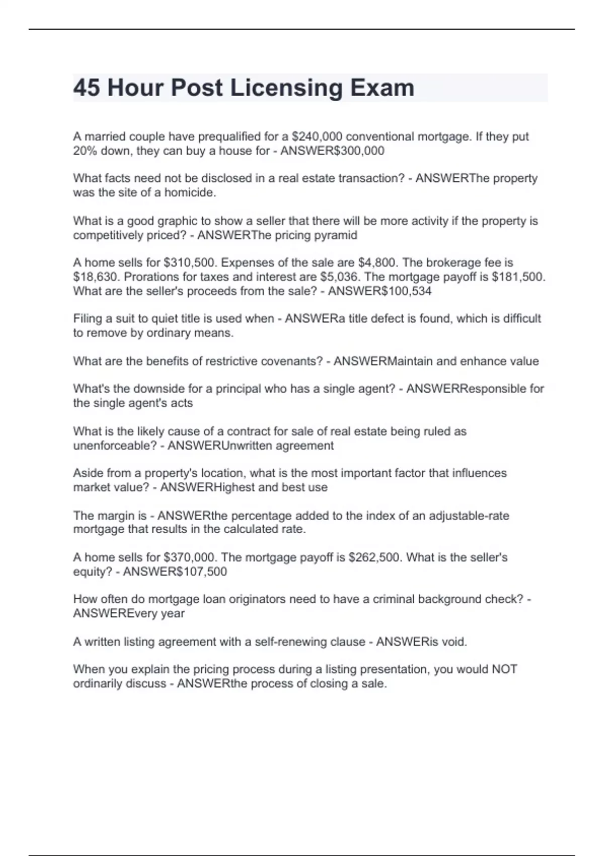 45 Hour Post Licensing Exam.Interview and solutions