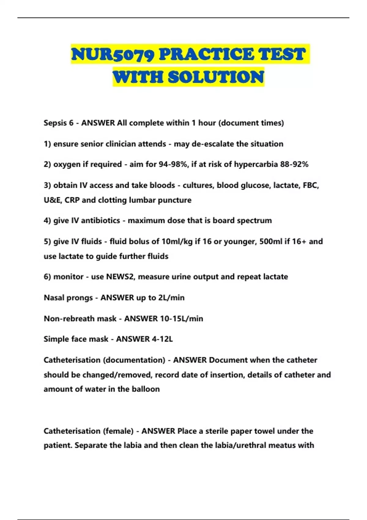 NUR5079 PRACTICE TEST WITH SOLUTION