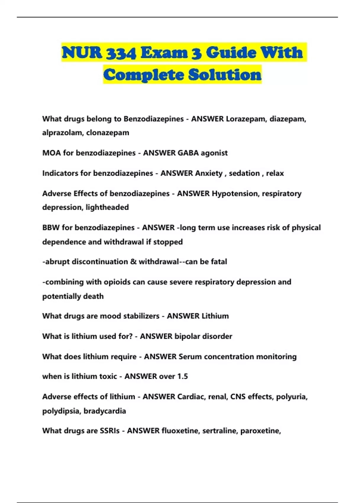 NUR 334 Exam 3 Guide With Complete Solution...