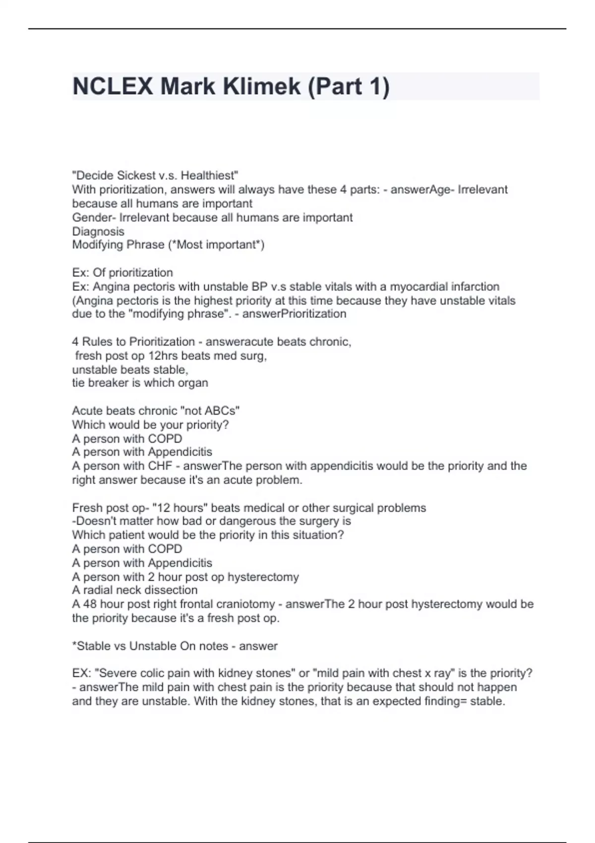 NCLEX Mark Klimek (Part 1) Questions with correct Answers 2024