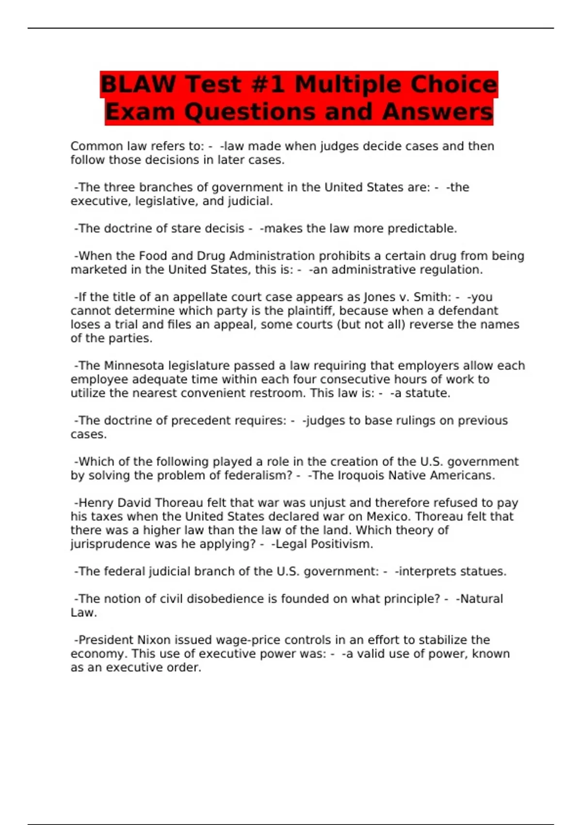 blaw test 1 multiple choice exam questions and an