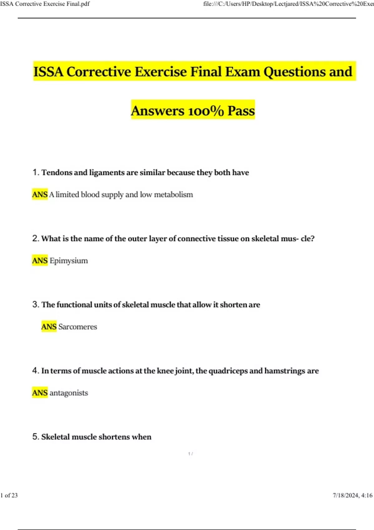 ISSA Corrective Exercise Final Exam Questions and Answers Updated (2024 / 2025) (Verified Answers)