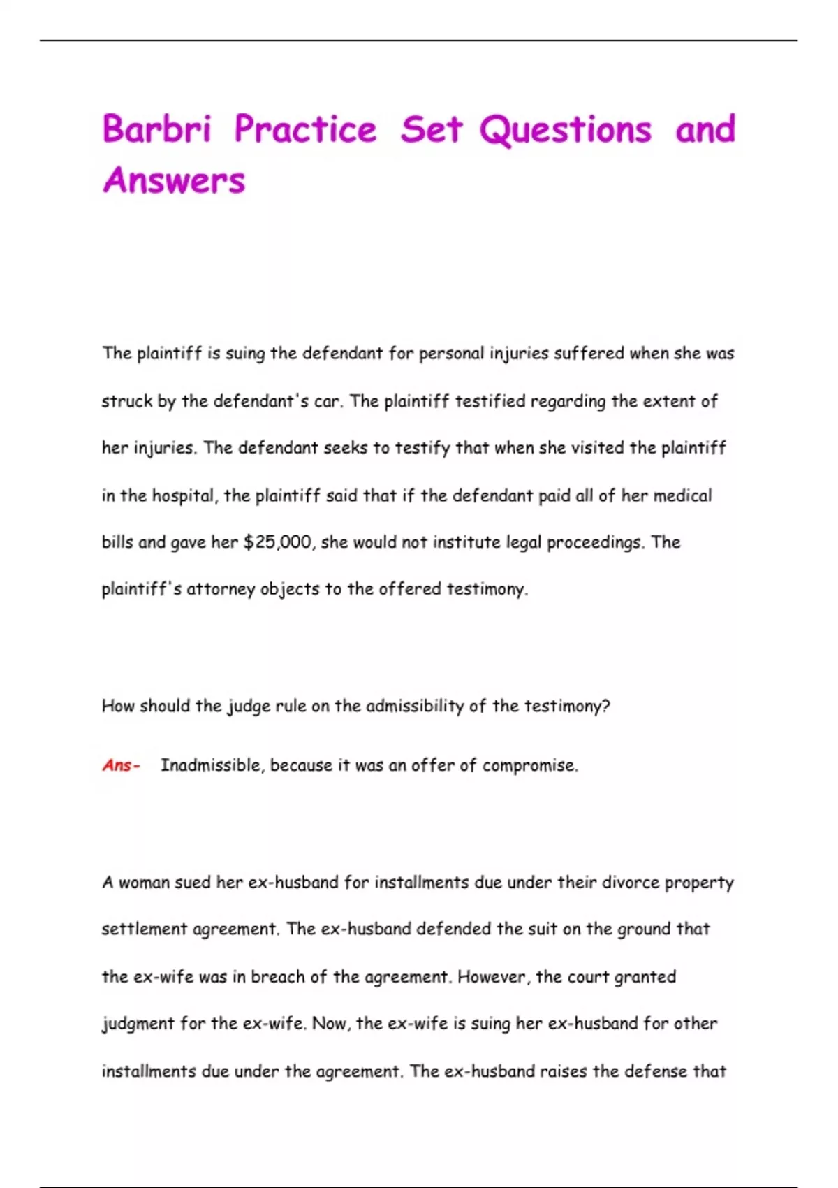 Barbri Practice Set Questions and Answers