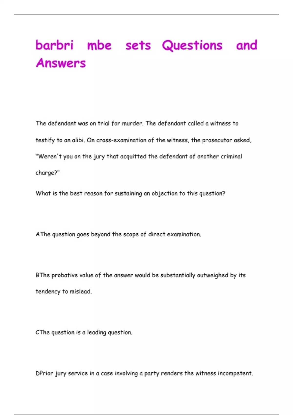 barbri mbe sets Questions and Answers