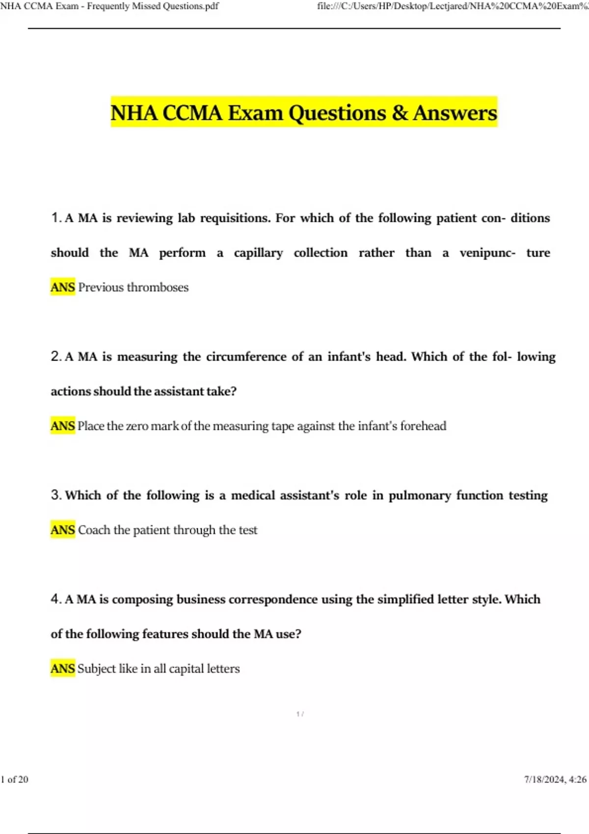 NHA CCMA Exam 2024 Questions and Answers Updated (2024 / 2025) (Verified Answers)