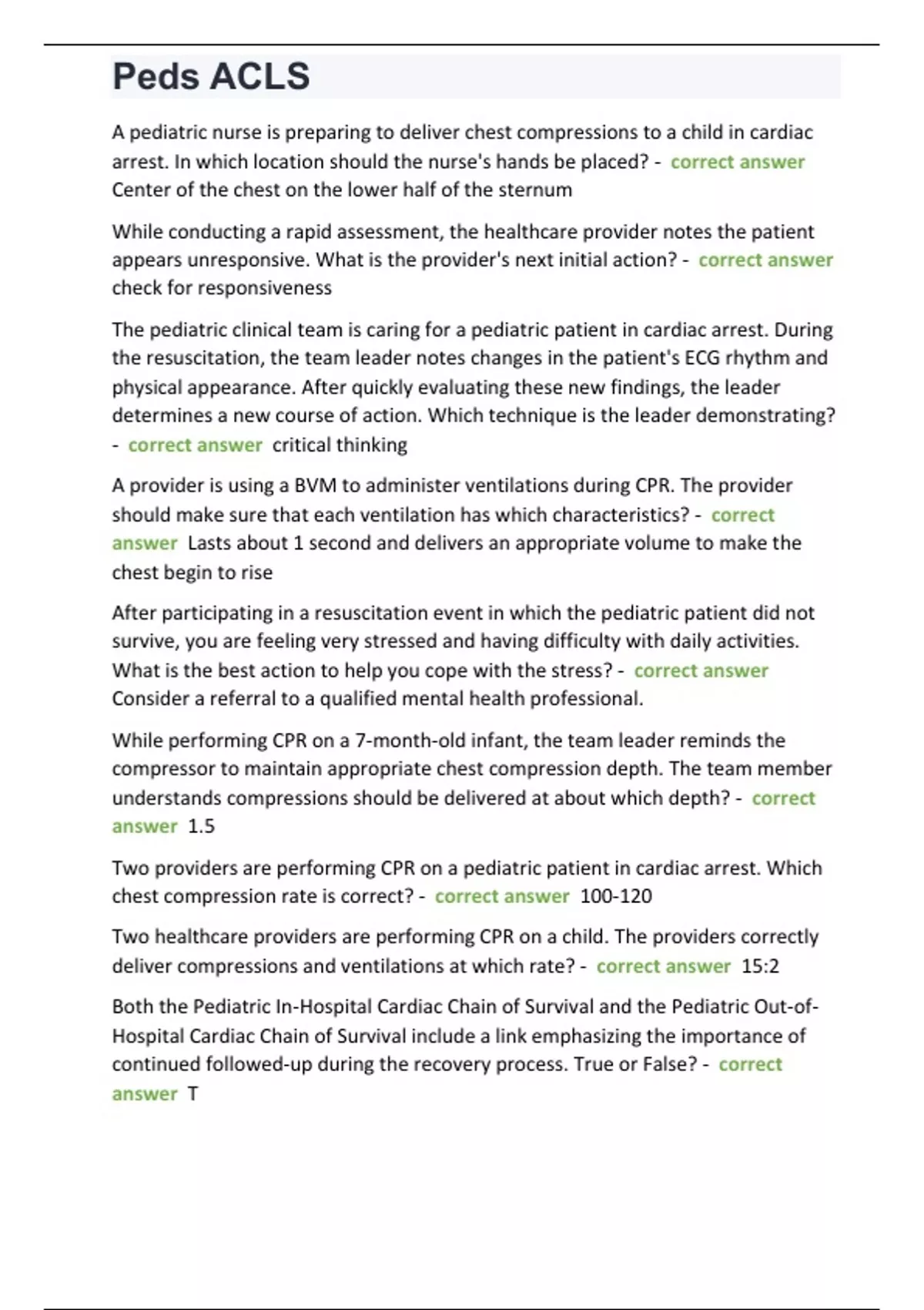 Peds ACLS 100+ questions with verified answers graded A+/Peds ACLS 100+ questions with verified answers graded A+/Peds ACLS 100+ questions with verified answers graded A+