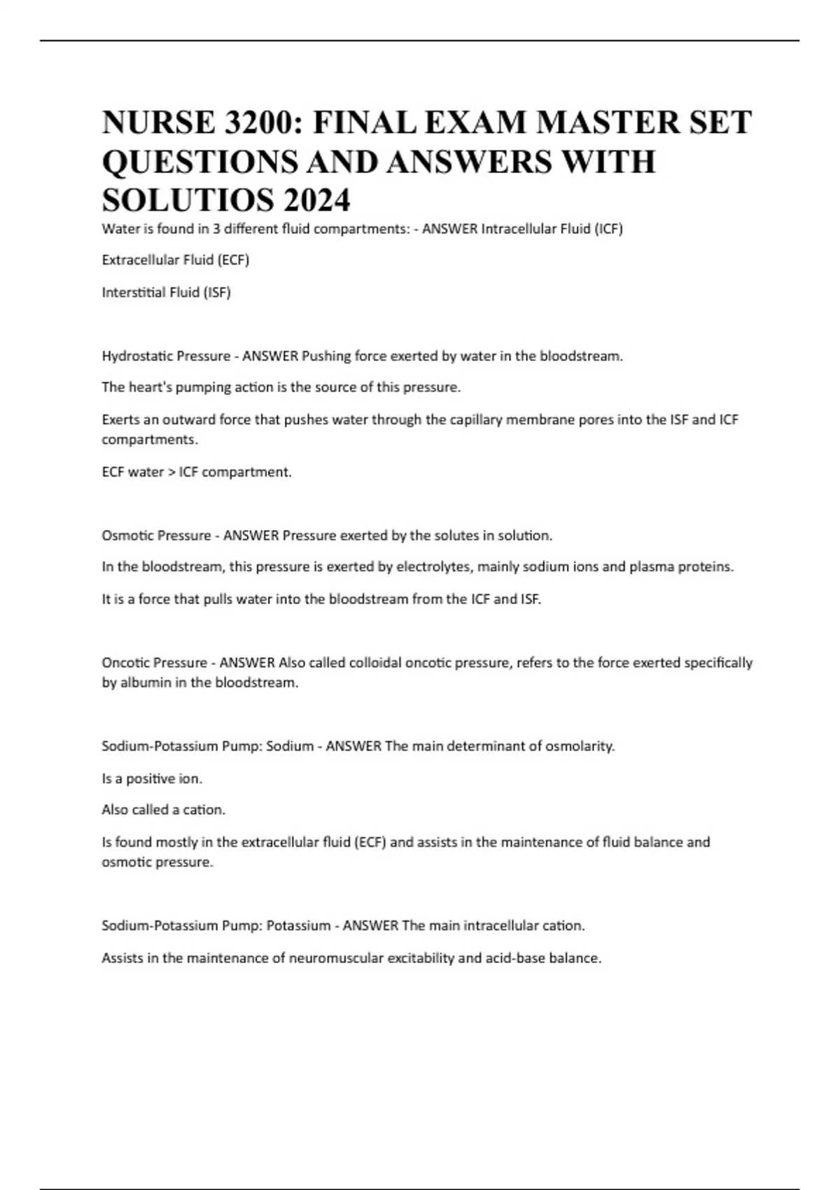 NURSE 3200: FINAL EXAM MASTER SET QUESTIONS AND ANSWERS WITH SOLUTIOS 2024