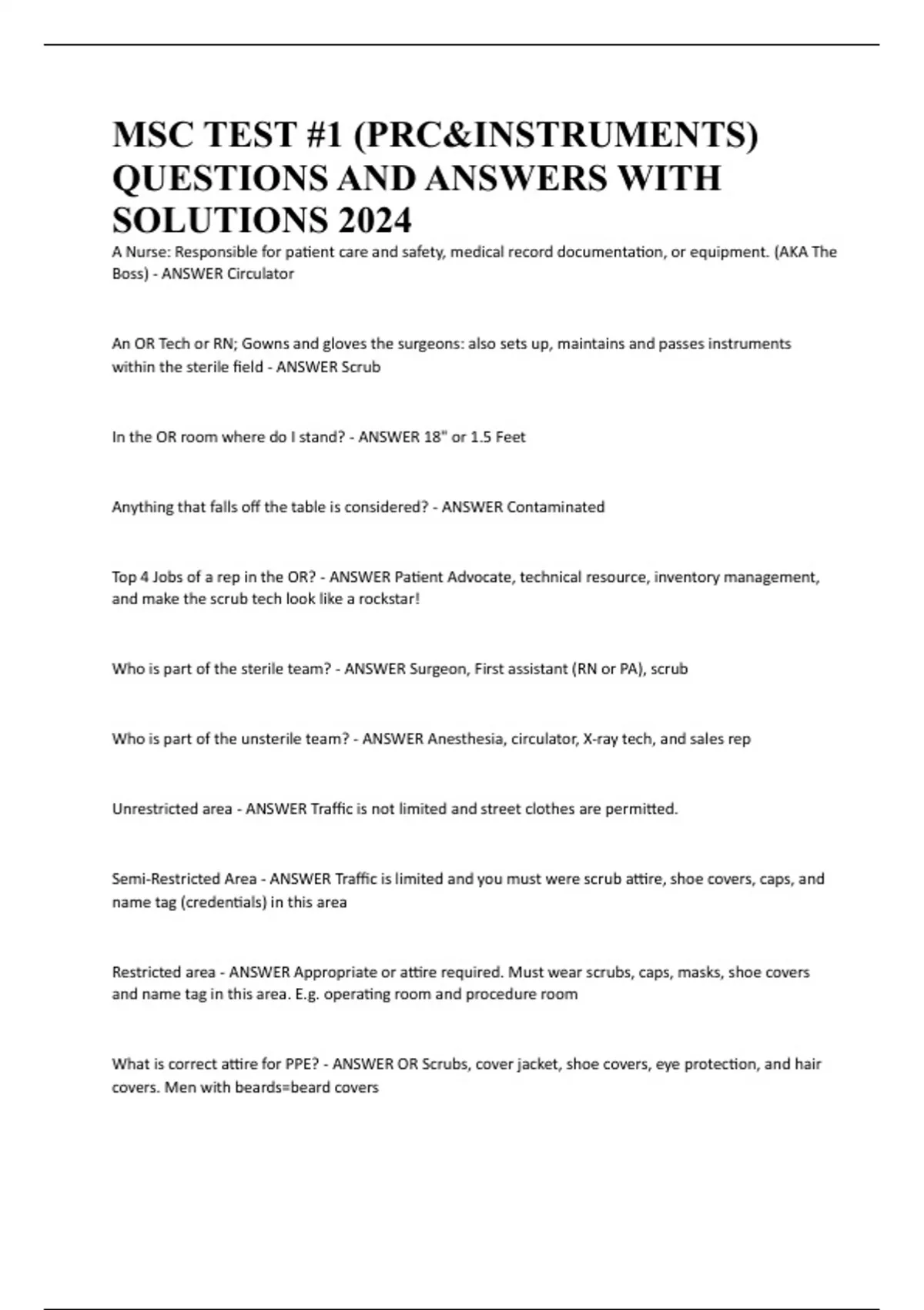 MSC TEST #1 (PRC&INSTRUMENTS) QUESTIONS AND ANSWERS WITH SOLUTIONS 2024