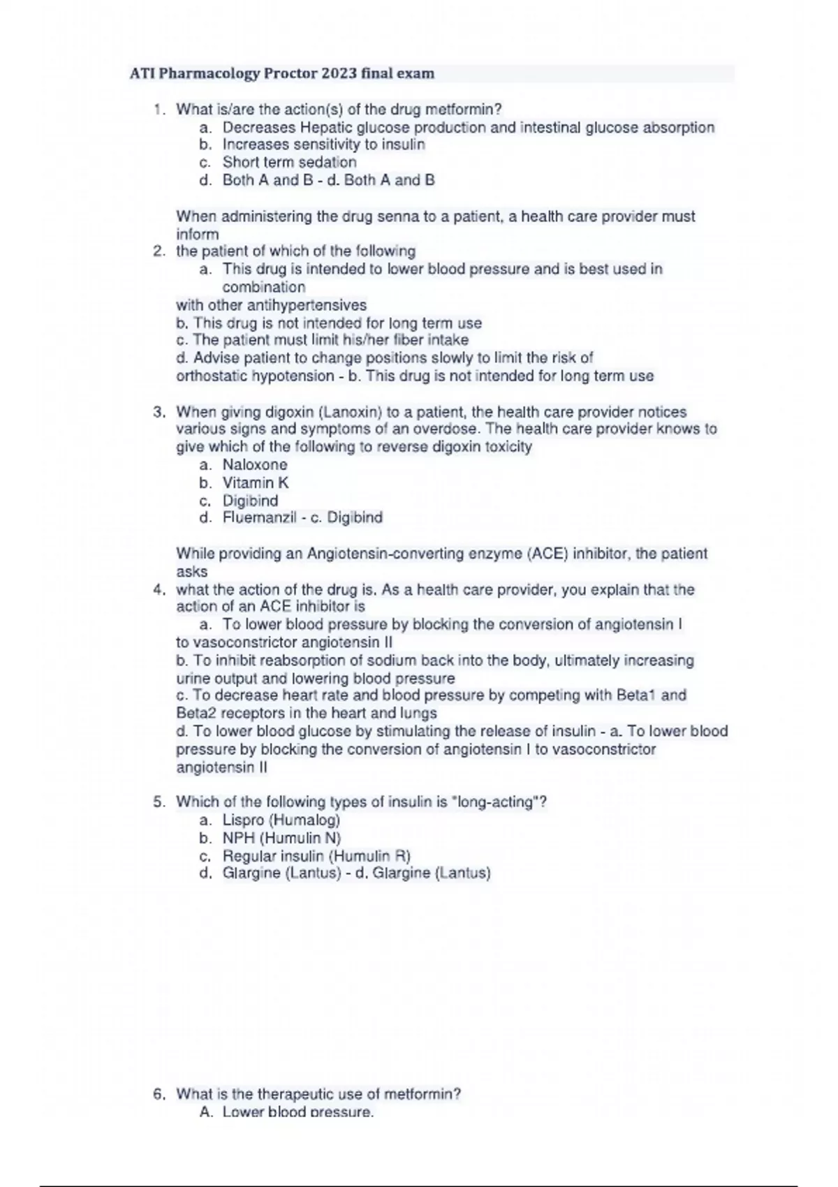 ATI Pharmacology Proctor 2023 final exam with complete solutions/ latest update (stuvia 5 stars rating) Score A+ Download