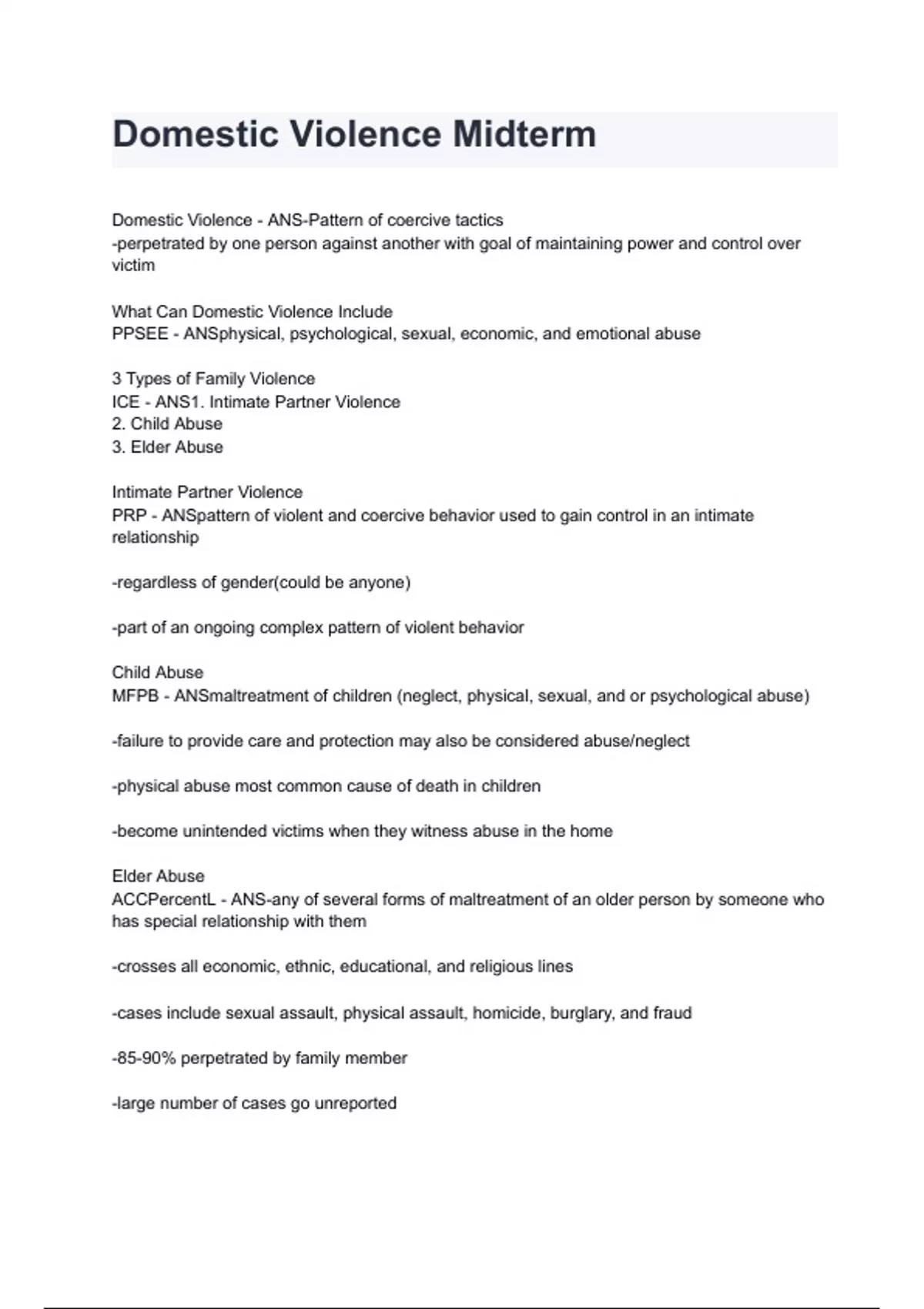 Domestic Violence Midterm questions and answers A+ score assured 2024/2025