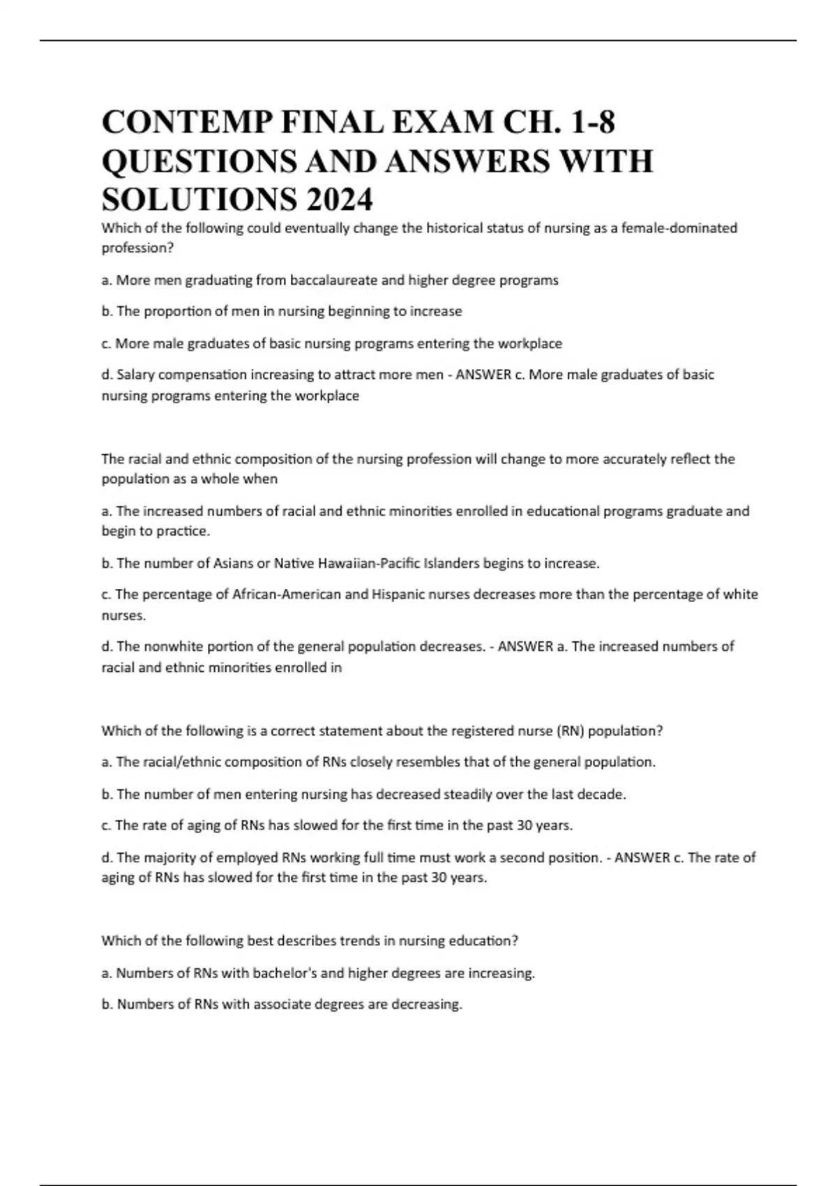 CONTEMP FINAL EXAM CH. 1-8 QUESTIONS AND ANSWERS WITH SOLUTIONS 2024
