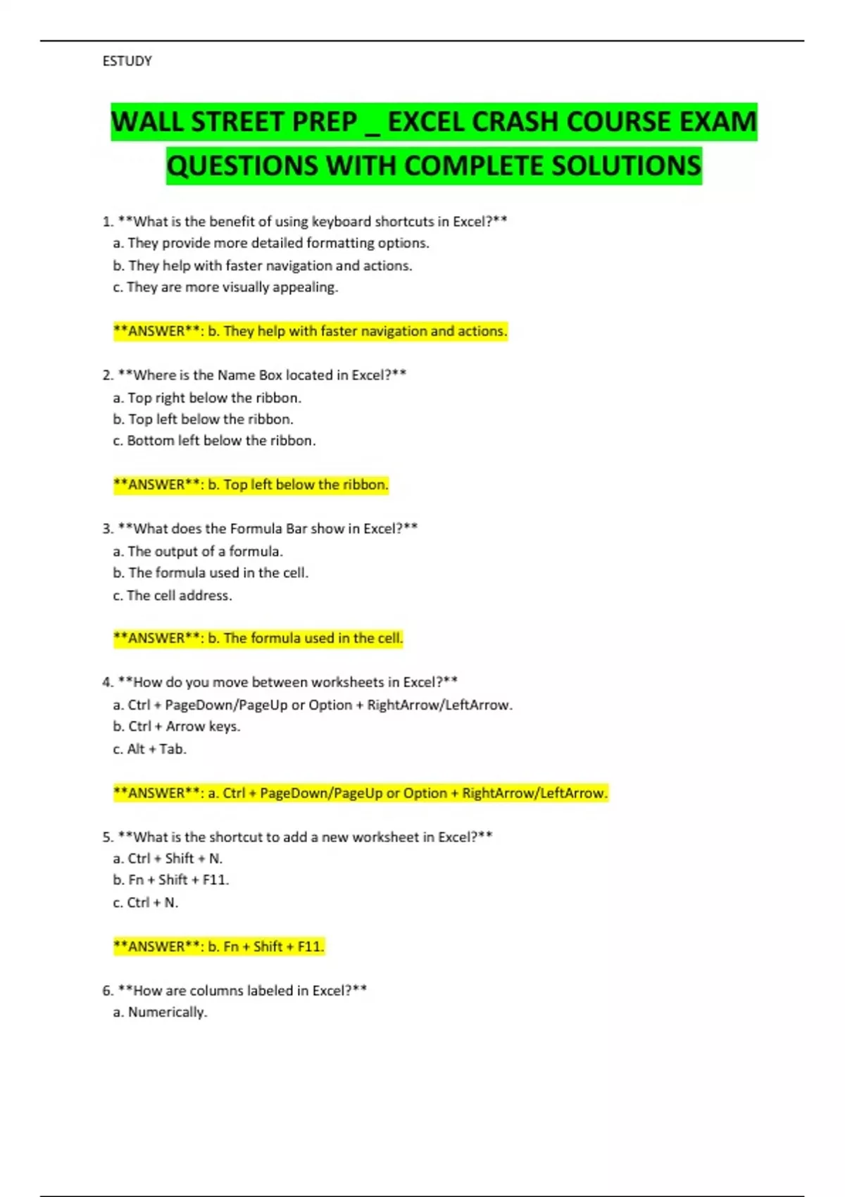 WALL STREET PREP _ EXCEL CRASH COURSE EXAM QUESTIONS WITH COMPLETE SOLUTIONS