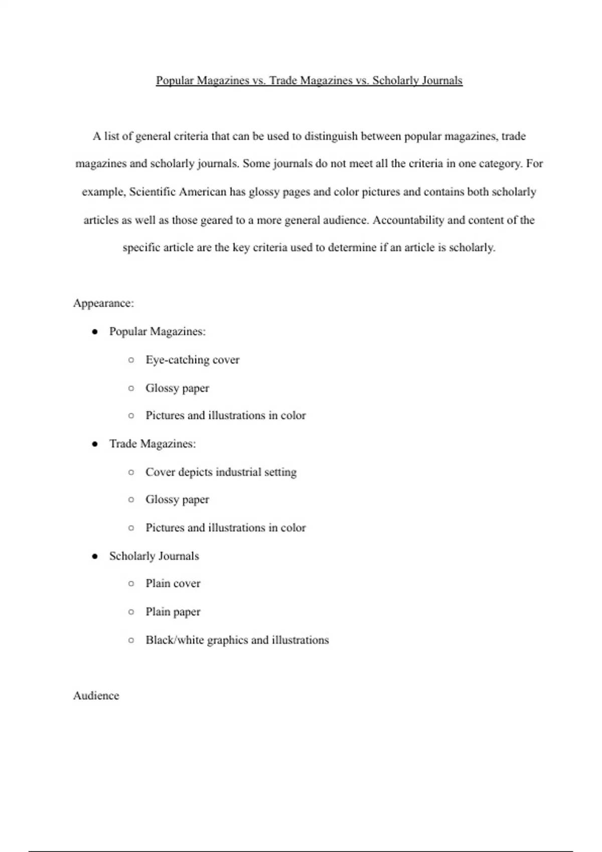 Popular Magazines vs Trade Magazines vs Scholarly Journals Testing out of Library 50