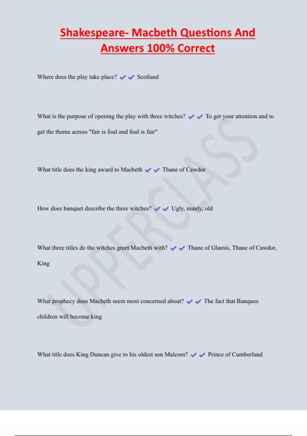 Shakespeare- Macbeth Questions And Answers 100% Correct