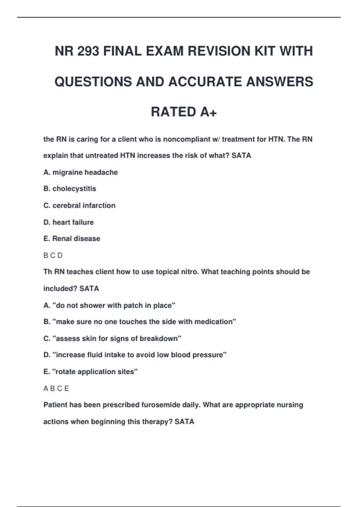 NR 293 FINAL EXAM REVISION KIT WITH QUESTIONS AND ACCURATE ANSWERS RATED A+