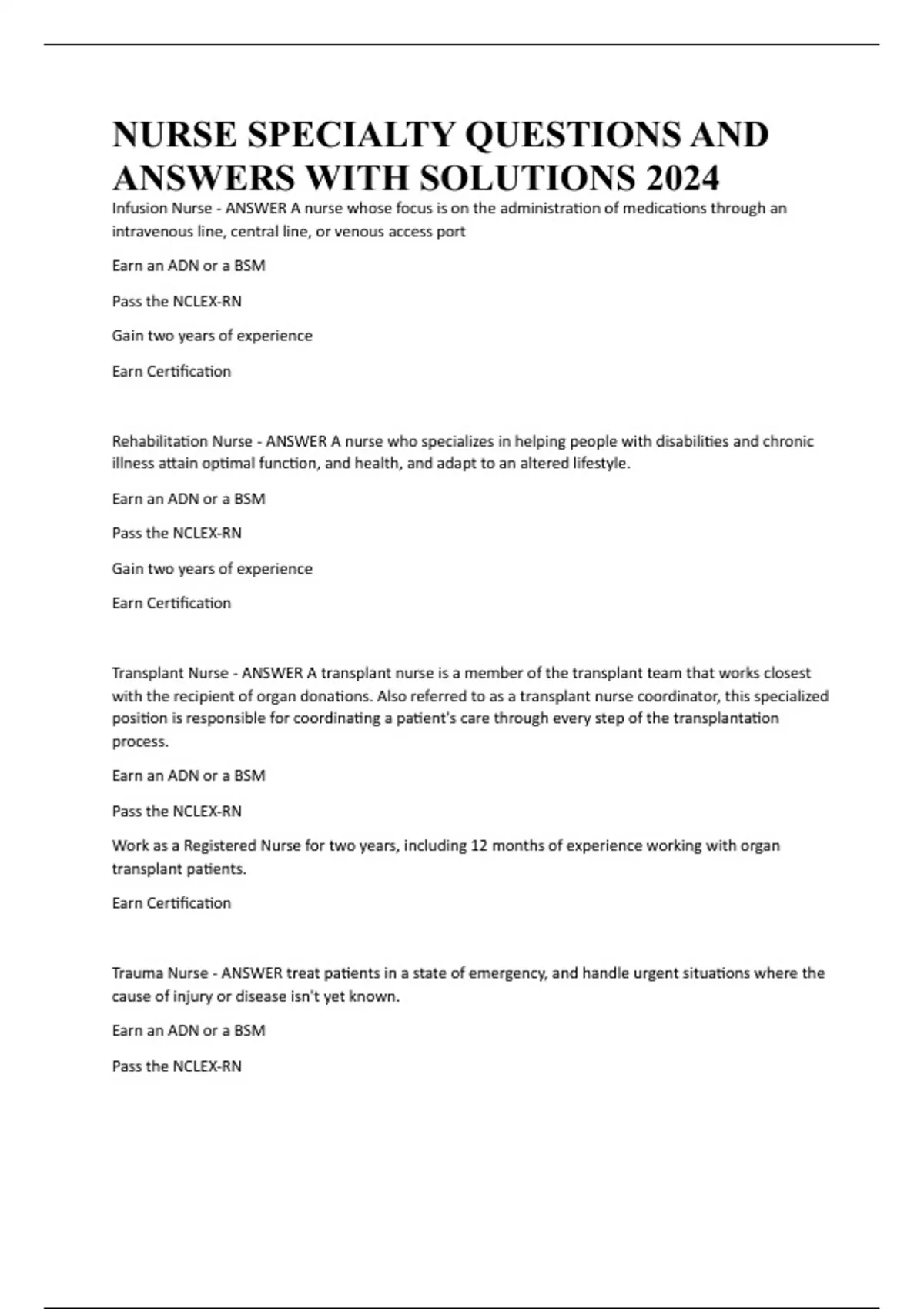 NURSE SPECIALTY QUESTIONS AND ANSWERS WITH SOLUTIONS 2024