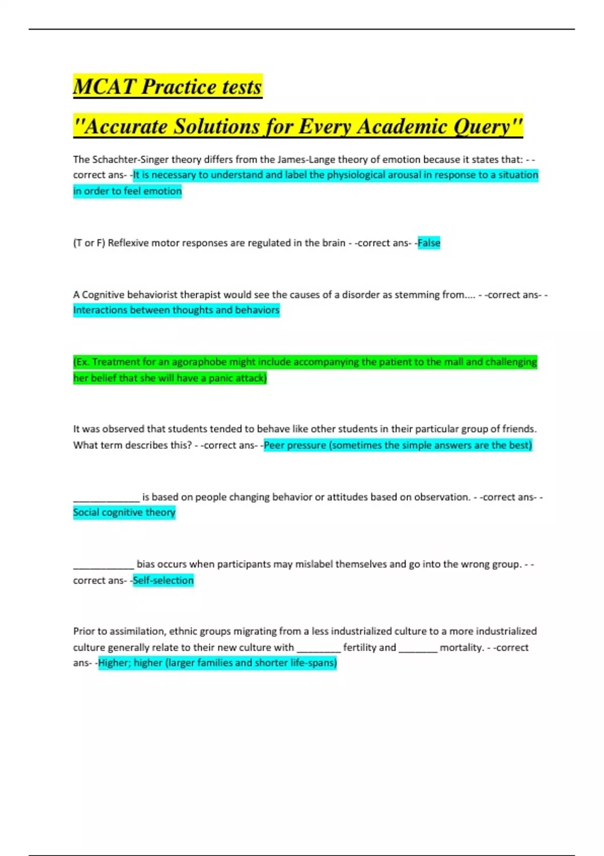 Master the MCAT: Your Essential Q&A Guide Elevate your MCAT preparation with our comprehensive questions and answers document. Designed to streamline your study process, this guide offers everything you need to tackle the MCAT with confidence and precision. What You'll Find Inside: Extensive Question Collection: Hundreds of practice questions covering all MCAT sections, including Biological Sciences, Physical Sciences, Psychological Sciences, and Critical Analysis. Detailed Answer Explanations: Step-by-step solutions and thorough explanations to deepen your understanding. Proven Test Strategies: Expert tips and techniques to enhance your test-taking skills and optimize your performance. Simulated Practice Tests: Full-length practice exams to help you get accustomed to the test format and timing. Why This Guide is a Must-Have: Expertly Curated Content: Created by experienced MCAT educators and subject matter experts. Current and Comprehensive: Reflects the latest MCAT syllabus and exam patterns. Easy to Navigate: User-friendly format for efficient studying and quick reference. Engaging Learning Experience: Interactive questions designed to stimulate critical thinking and retention. Perfect For: Pre-med students determined to achieve high MCAT scores. Learners needing a thorough review and reinforcement of key concepts. Individuals seeking practical and realistic exam practice. Achieve Your MCAT Goals: Equip yourself with the best preparation tools and insights. Our MCAT Q&A guide is crafted to help you excel, providing the knowledge and confidence you need to succeed on exam day.