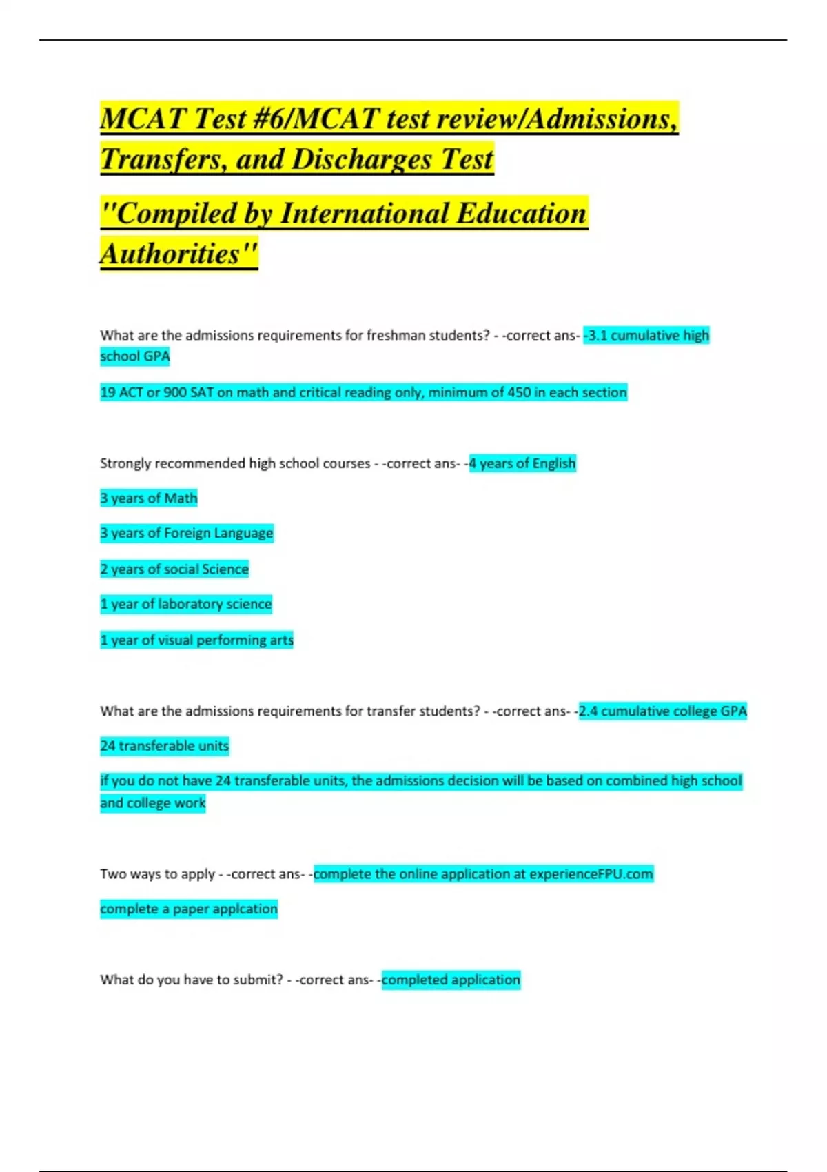 Conquer the MCAT: Your Ultimate Q&A Guide Prepare to excel on the MCAT with our thorough and engaging questions and answers document. This indispensable resource is designed to help you navigate the complexities of the exam and achieve your best possible score. Key Features: Diverse Question Set: A wide range of questions across all MCAT sections – Biological and Biochemical Foundations, Chemical and Physical Foundations, Psychological and Social Foundations, and Critical Analysis and Reasoning Skills. Comprehensive Answers: Detailed, easy-to-understand explanations that enhance learning and retention. Strategic Preparation: Proven techniques and strategies to approach each question type confidently. Full-Length Practice Exams: Simulate the actual MCAT experience to build familiarity and reduce test-day anxiety. Why Choose This Guide? Expertly Developed: Crafted by leading MCAT tutors and medical professionals with extensive experience. Current Content: Aligned with the latest MCAT standards and exam trends. Intuitive Design: Organized for easy navigation, allowing you to focus on what matters most. Interactive and Engaging: Designed to promote active learning and critical thinking, making study sessions more effective. Who Will Benefit: Pre-med students committed to achieving top MCAT scores. Learners who need a comprehensive review of MCAT material. Individuals looking for structured practice and effective test-taking strategies. Optimize Your Study Time: Maximize your MCAT preparation with our Q&A guide. This essential tool will equip you with the knowledge, skills, and confidence to excel on the exam and take a significant step towards your medical career.