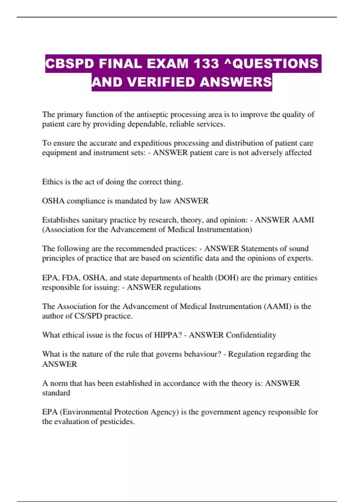 CBSPD FINAL EXAM 133 ^QUESTIONS AND VERIFIED ANSWERS