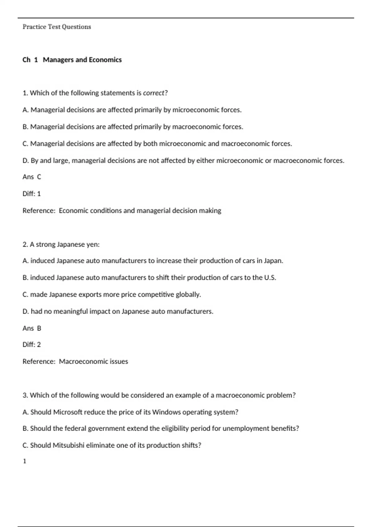 Reference: Economic conditions and managerial decision making