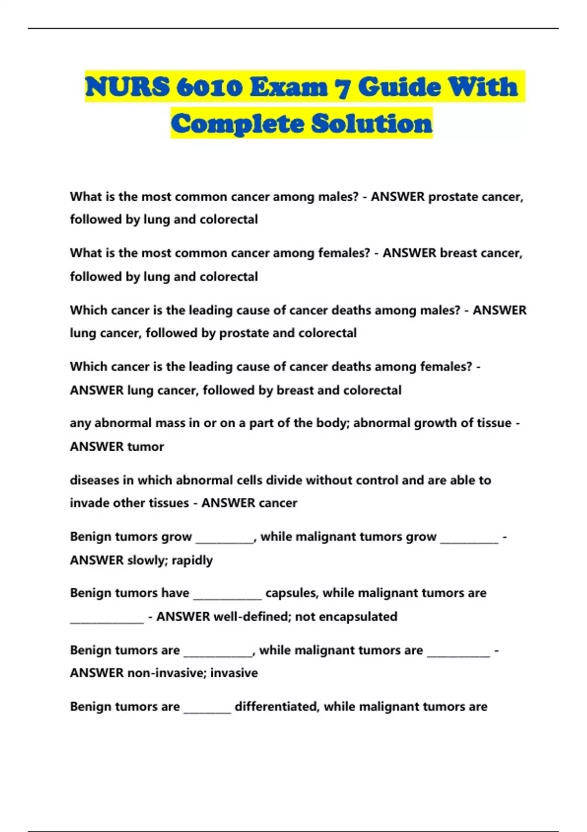nurs 6010 exam 7 guide with complete solution