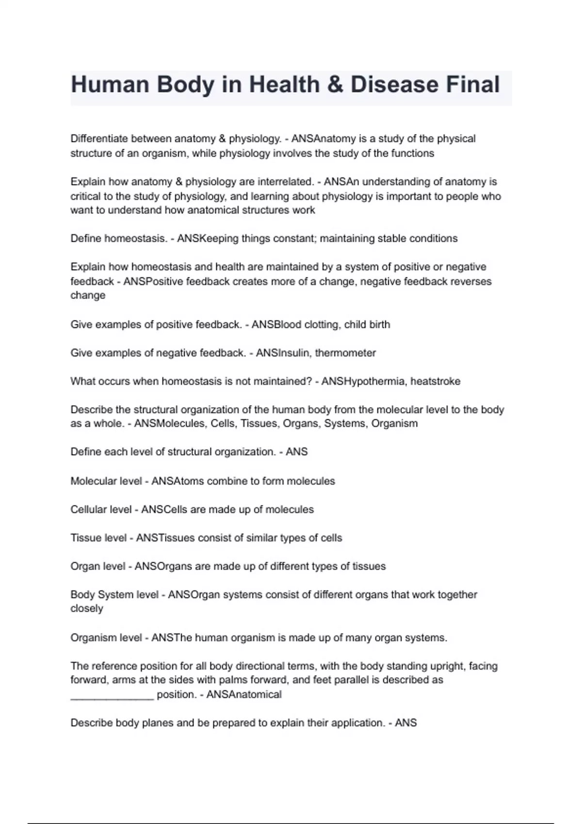 Human Body in Health & Disease Final