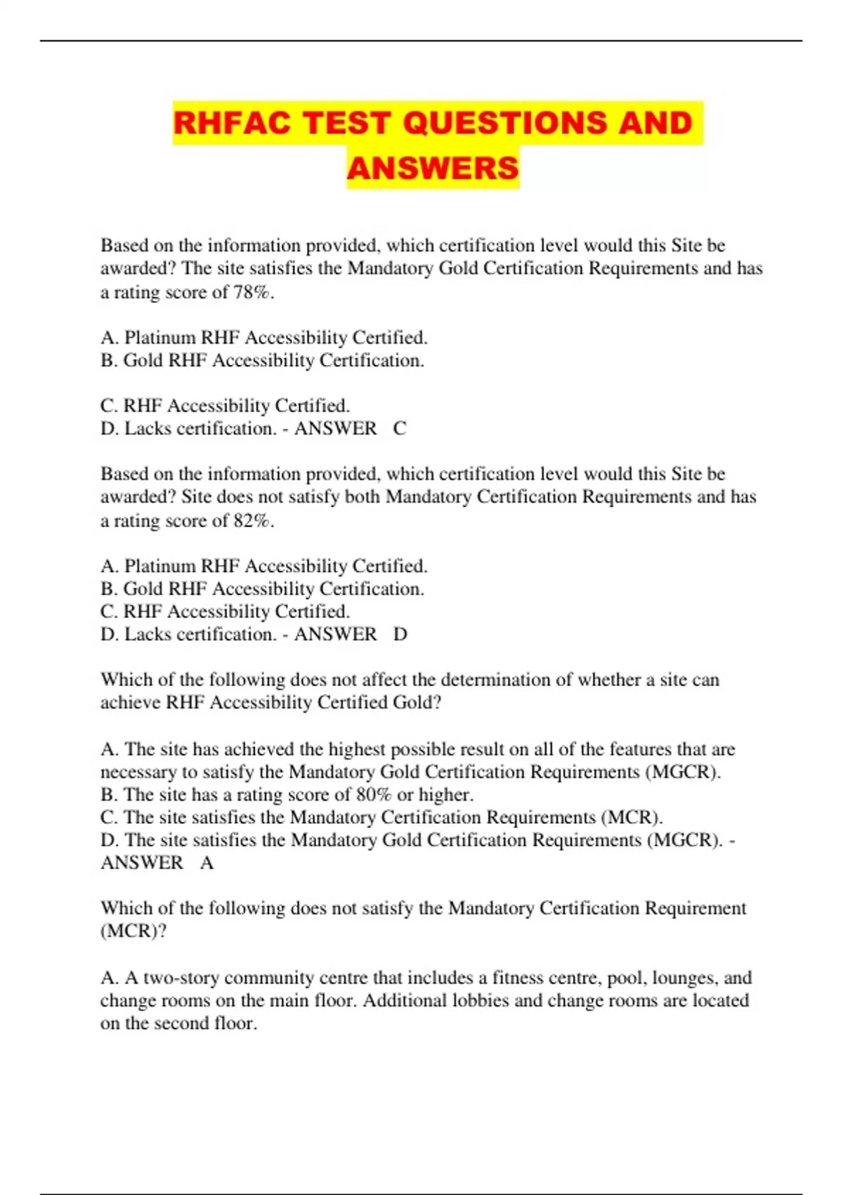 RHFAC TEST QUESTIONS AND ANSWERS
